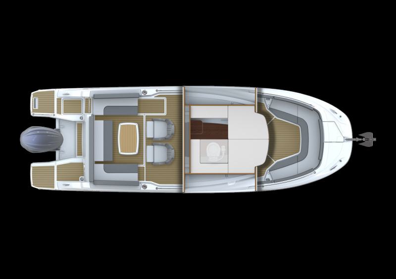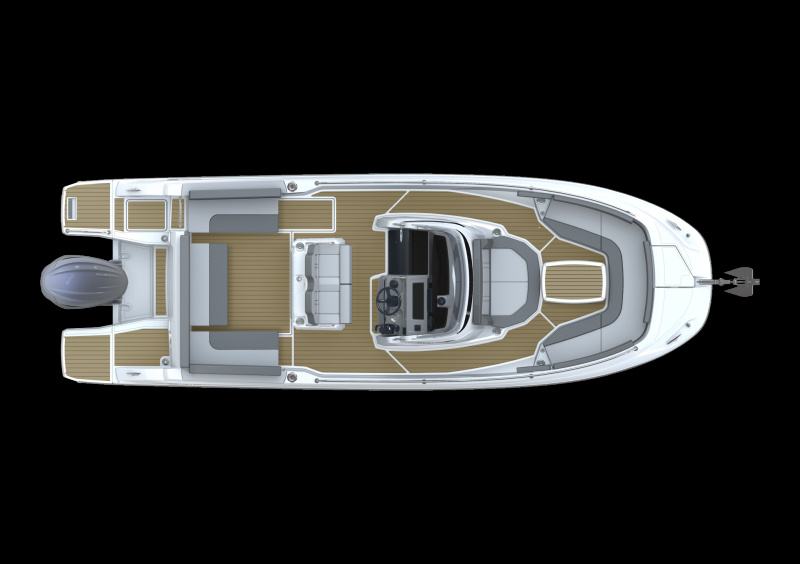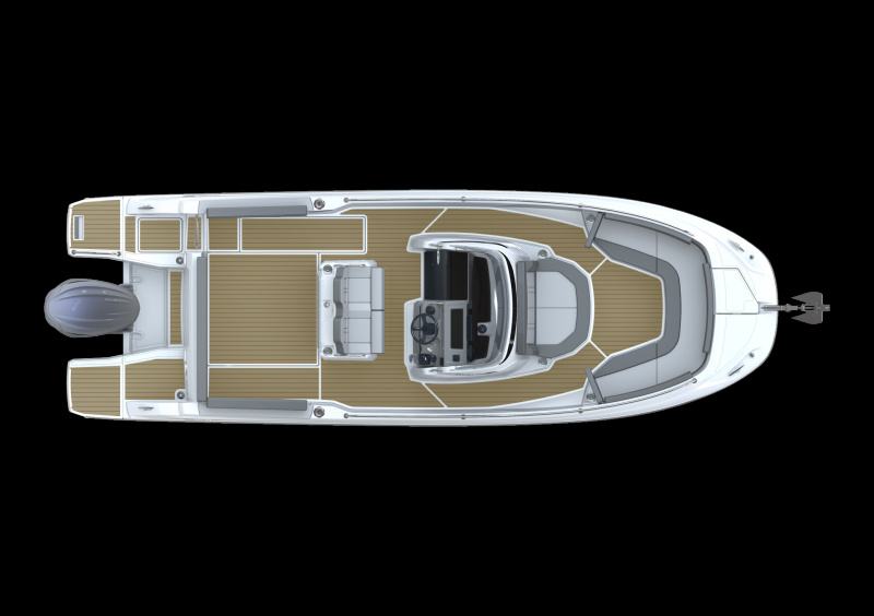 Na modelu Cap Camarat 7.5 CC Serie 2, konzola pokazuje mišičavi dizajn, kao na velikim američkim brodovima za ribolov: velika instrument ploča, više vertikalan upravljač i vertikalniji vjetrobran. U sebi skriva veliki prostor za spremanje, lako dostupan kroz klizna vrata. Dva ograđena palubna prolaza olakšavaju kretanje oko konzole. Na pramcu, prostran palubni prostor U-oblika pruža udobno mjesto za obrok i može se pretvoriti u veliko sunčalište.