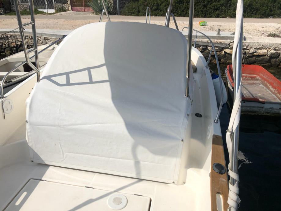 Plovilo je opremljeno svim pokrivalima , navlaka za konzolu,plovilo je opremljeno Humminbird fish finder(Helix 9),radio stanica , radio sa zvučnicima , plava boja trupa , električno sidreno vitlo, set za privez, set za sidrenje.Upravo servisiran, ispoliran, novi antifouling, cinkovi.Spreman za korištenje bez ikakvih ulaganja.