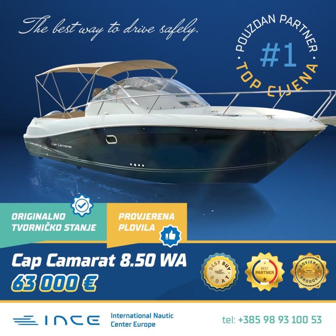 Pionir Walk Around koncepta u Europi, Jeanneau pokazuje svoje majstorstvo s modelom Cap Camarat 8.5 WA. Svojim elegantnim i dinamičnim dizajnom, ovaj čamac savršeno odgovara za obalna krstarenja i ribolov. Riječ je o pravom morskom brodu, dostupan s jednim ili dva motora, koji ispunjava svoja obećanja zahvaljujući prostranom kokpitu, jednostavnom prolazu, velikom sunčalištu i udobnim rasporedom za 4 osobe.