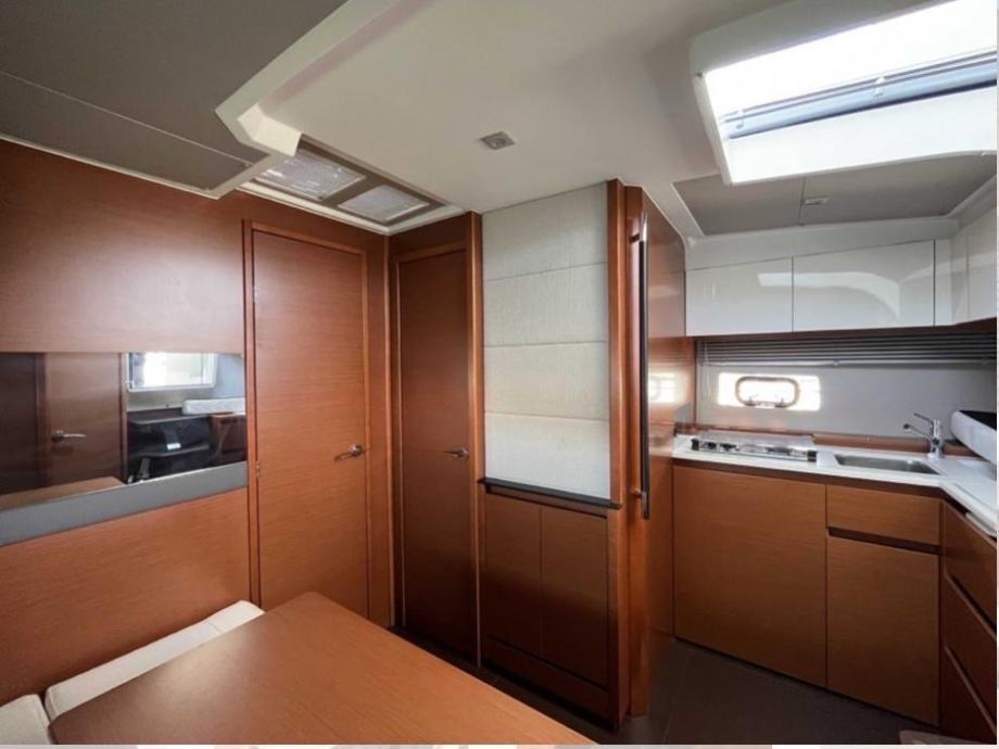 Eksterijer: Finiš “1ère” (kuhinjski ormarić u kokpitu, kokpit i platforma obloženi masivnim drvom, ventilacijski paket, LED rasvjeta, stol od masivnog drva u kokpitu s zaštitnom navlakom…), električni flapsovi, električno sidreno vitlo, jastuci za sunčanje na pramcu s podesivim naslonom, novi set za zatvaranje kokpita, hladnjak u kokpitu 42 L, generator MASE 3 kW.
