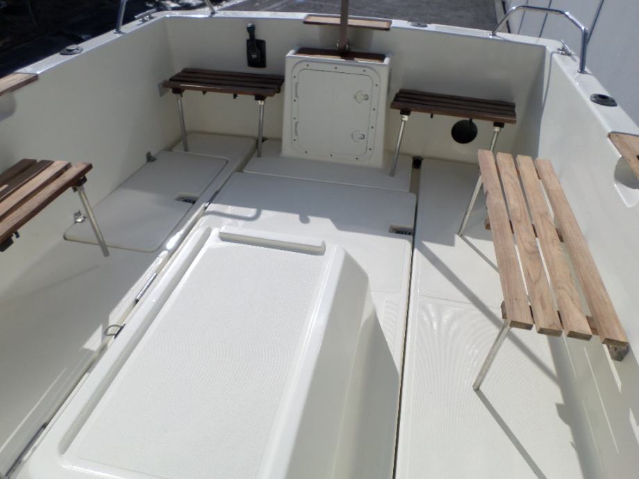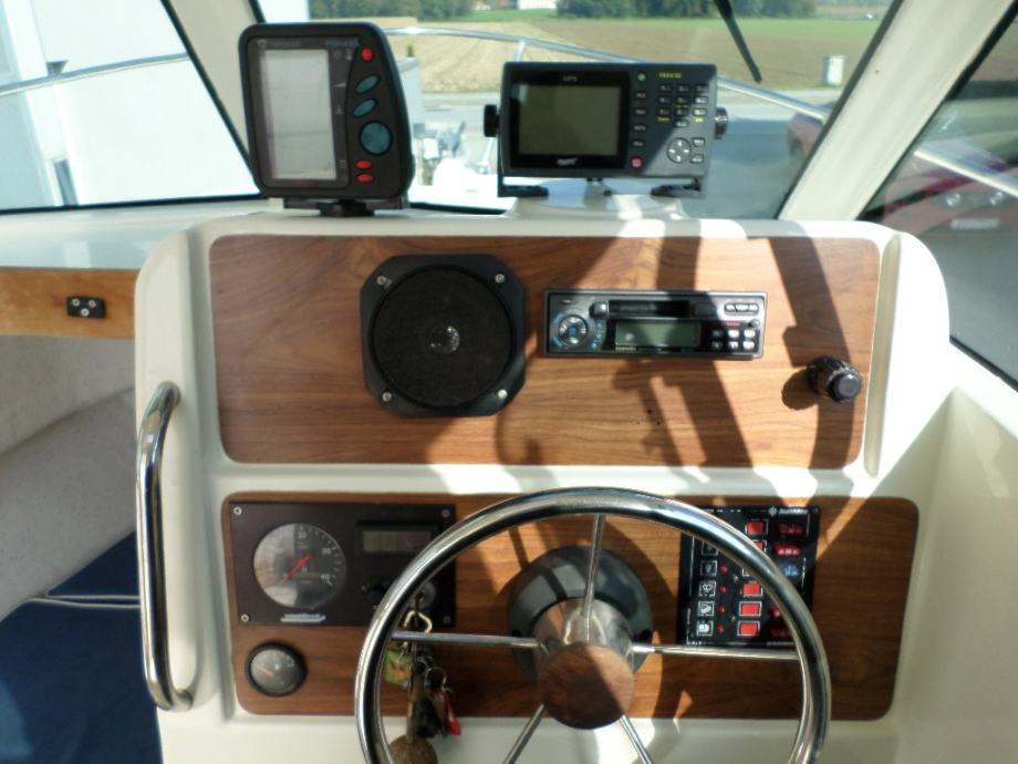 Oprema/opis : izvrstan fisherman, vrlo stabilan na jačem moru, izrazito velik krmeni prostor, širok prolaz do pramca, klupe u krmi, duple komande ( kromilo i komanda u krmi) bazen za živu ješku, ljestve ,GPS,FISHFINDER,,EL.SIDERNO VITLO,TROLLING VENTIL, kabina za dvoje, putna brzina 15-16 mph, max preko 20