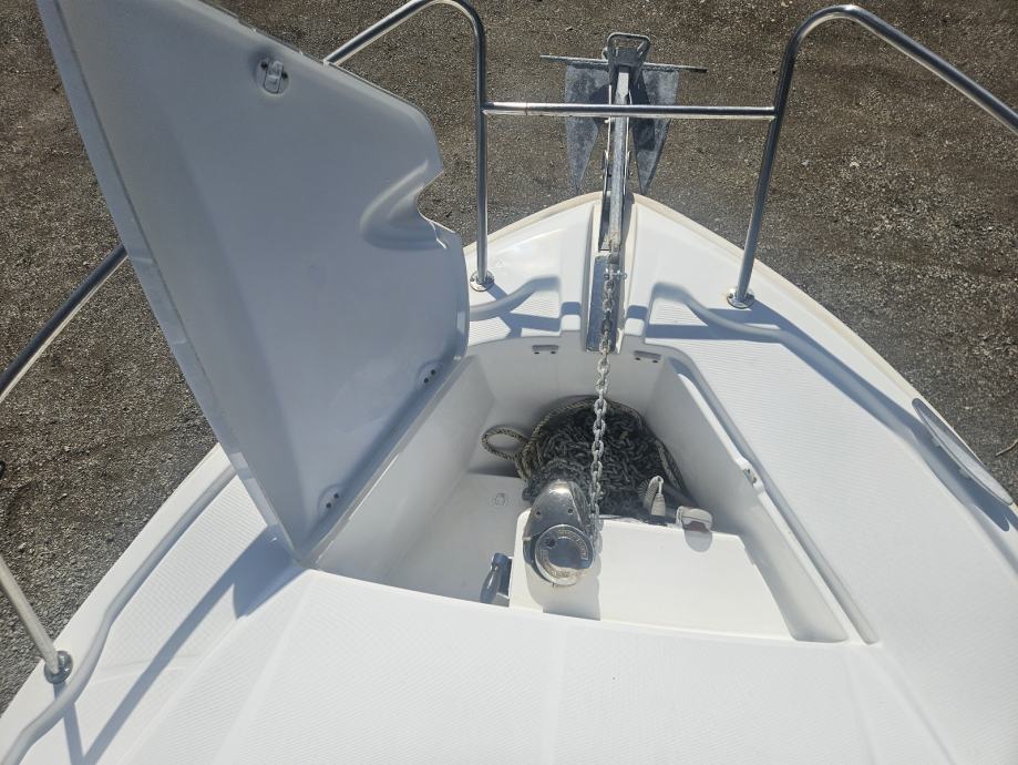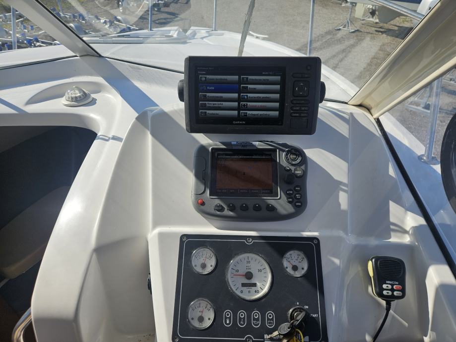 OPRREMA: Raymarine A60, Garmin echomap 72 sv, dvije sonde, winch, bimini tenda+sve tri bočne strane, platforma, wc,hladnjak,stol i klupe u krmi,whf,dva akumulatora, tank slatke vode, troling ventil, duple komande, pranje krme morskom vodom...