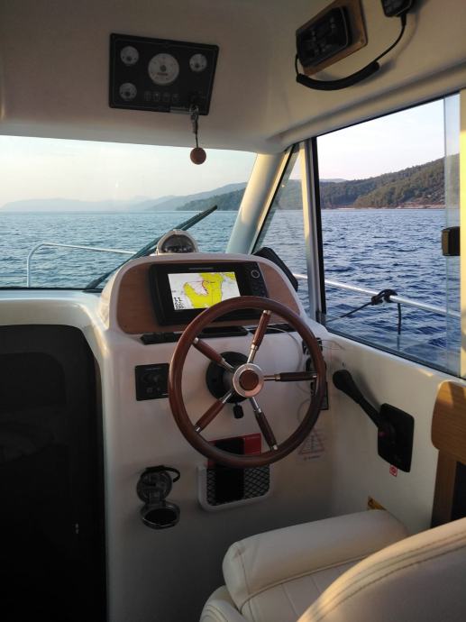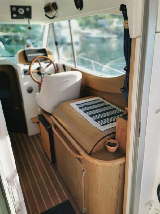 Prekrasan Merry Fisher 805, 2006 g. u izvrsnom stanju sa samo 780 radnih sati , motoriziran sa Nanni (Toyota) 200HP , opremljen sa fishfinder, gps, radio stanica, morski wc , plinska kuhala , sudoper , stol u kabini, stol na krmi , sklopiva klupa u kokpitu , bimini top tenda, plovilo je uredno servisirano i obavljano je kompletno održavanje svake godine.