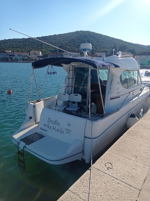 Brod je u baš dobrom stanju ima samo 600 radnih sati i prodaje se isključivo zbog nemogućnosti korištenje.Ovaj brod od opreme posjeduje baš sve a tko se razumije zna koliko to znači i vrijedi- priključak lučki na 220v, bojler tople vode, navigacija sa sonderom,radar,whf radio stanica,solarno napajanje,televizija,flapsovi,elektično vitlo za sidro sa mjeračem dubine,pramčani motor (traster) far sa daljinskim upravljanjem i još dosta drugih stvari.Odrađen servis sva ulja i filteri motor volvo tmd-41 jako pouzdan stroj.Tko želi ovakvu vrstu plovila prilika.