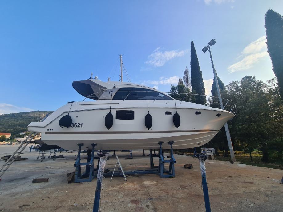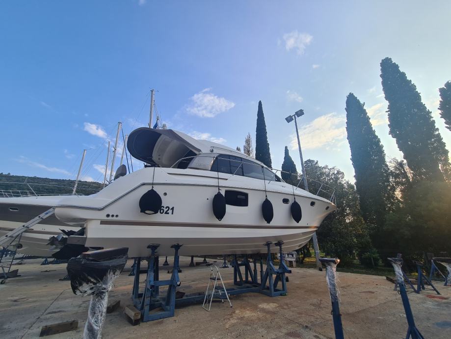 Svake godine uredno servisiran kod ovlastenog servisera. Brod nikada nije bio u charteru i prvi sam vlasnik i jedini kapetan. Od prvog dana je u ACI marini na vezu.