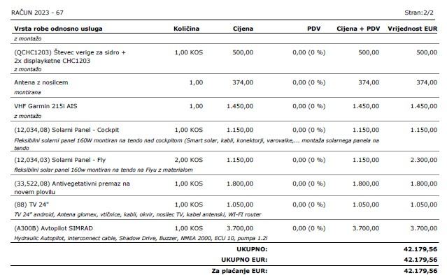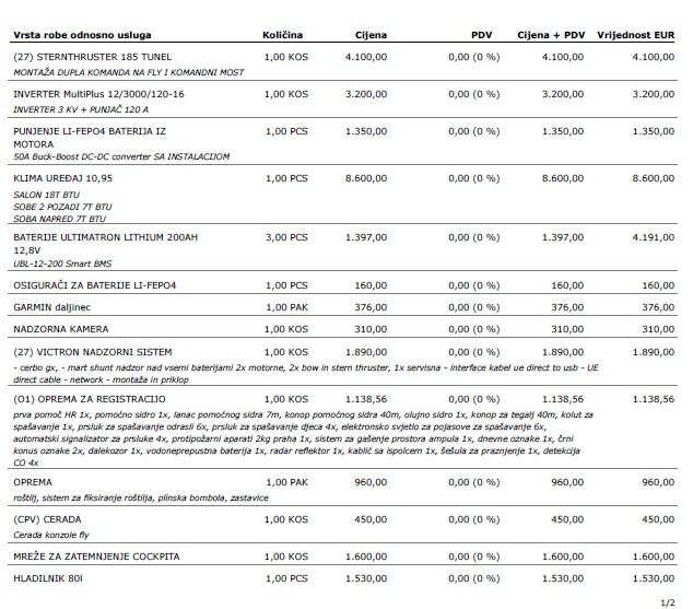 Sva moguća oprema, što se vidi sa računa priloženog u slikama