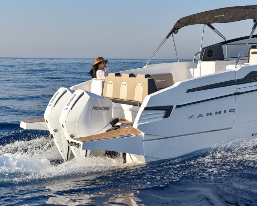 Najnoviji vrhunski CABIN CRUISER Karnic CS10-S postavlja nove standarde u klasi. Kabine za četiri odrasle osobe, modularni raspored krme, modularni raspored kokpita, najnoviji dizajn, 10 godina jamstva (10 Year limited waranty) - izvrsno korito/trup plovila.