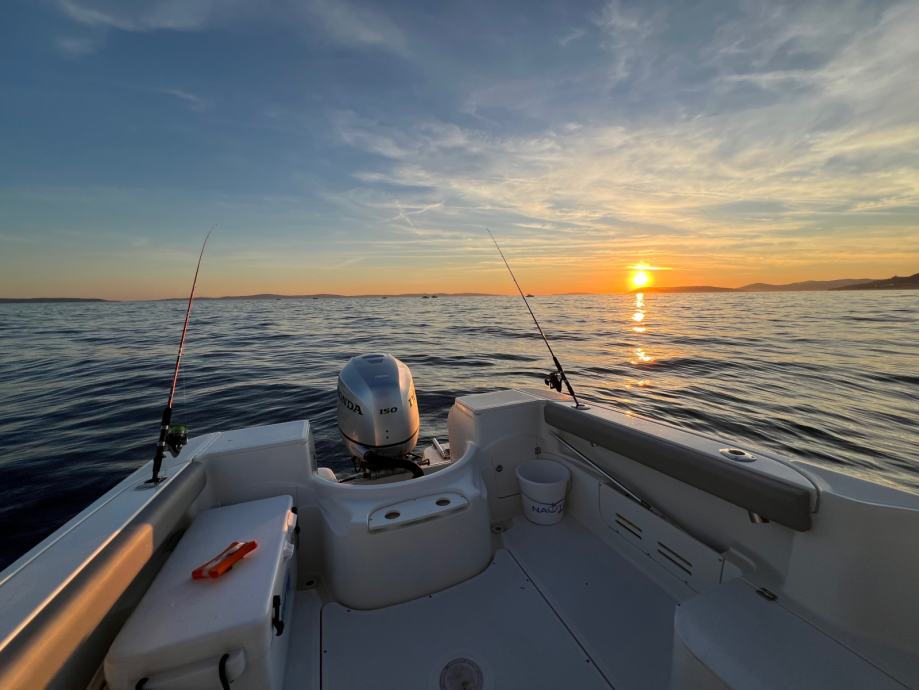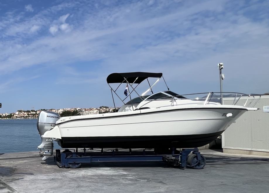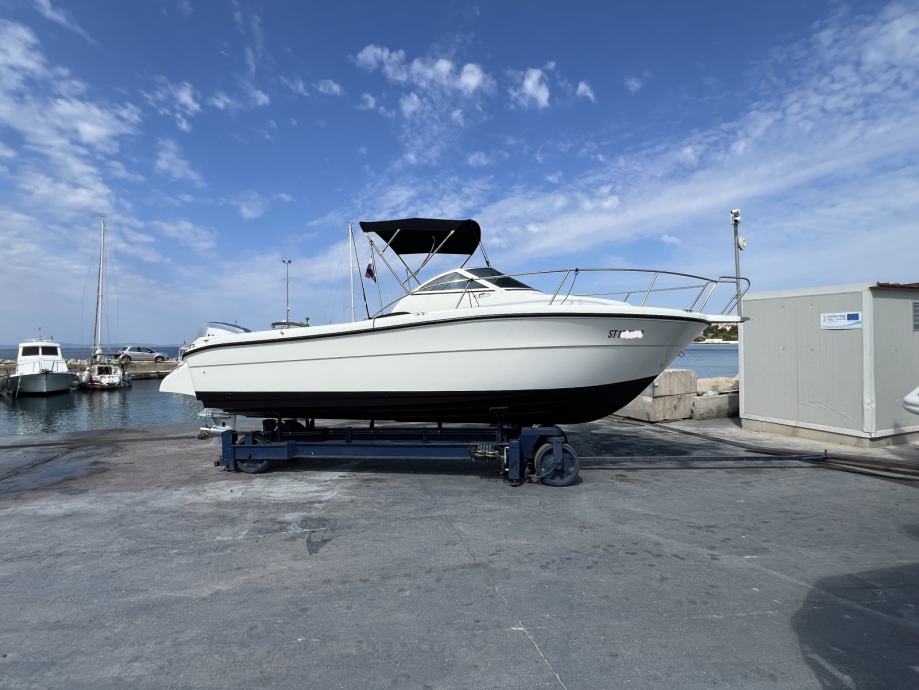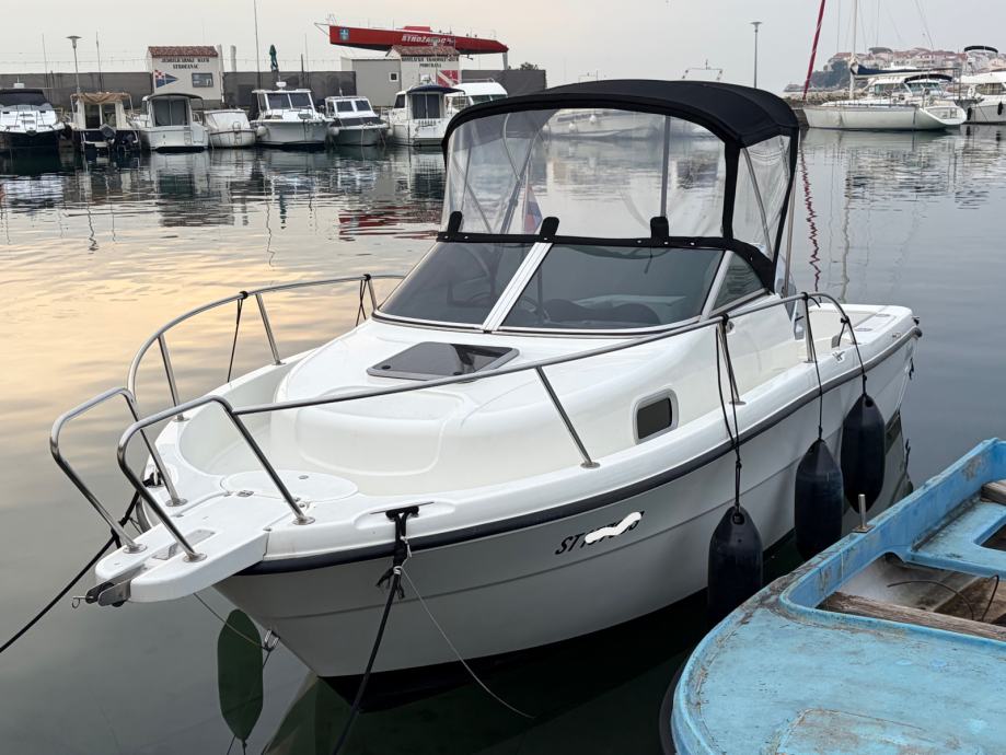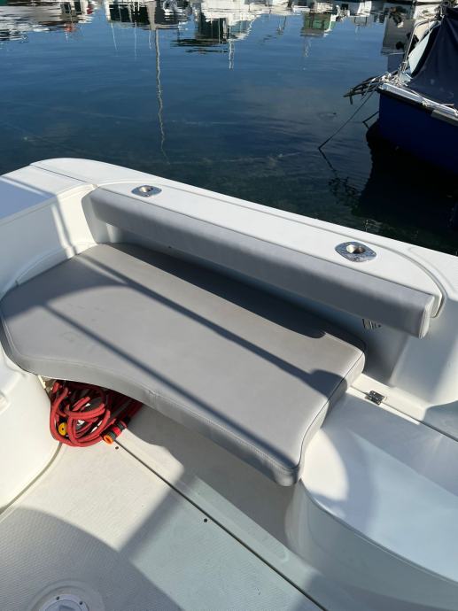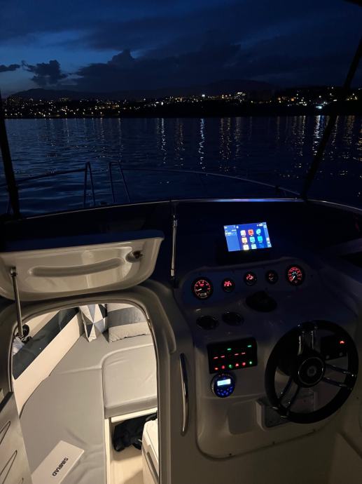 Od opreme: Simrad NSX 9 sa kartom Jadrana, sonda kroz trup, tuš 50L, gorivo 220L, muzika BOSS, full LED rasvjeta, podvodna svjetla,