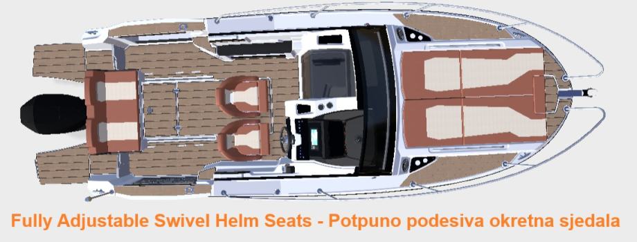 * Postoji inačica sa 2 sjedala i ona sa skiperskom klupom/kuhinjom, kao i razna oprema, a iskazana cijena se odnosi na najnižu cijenu.