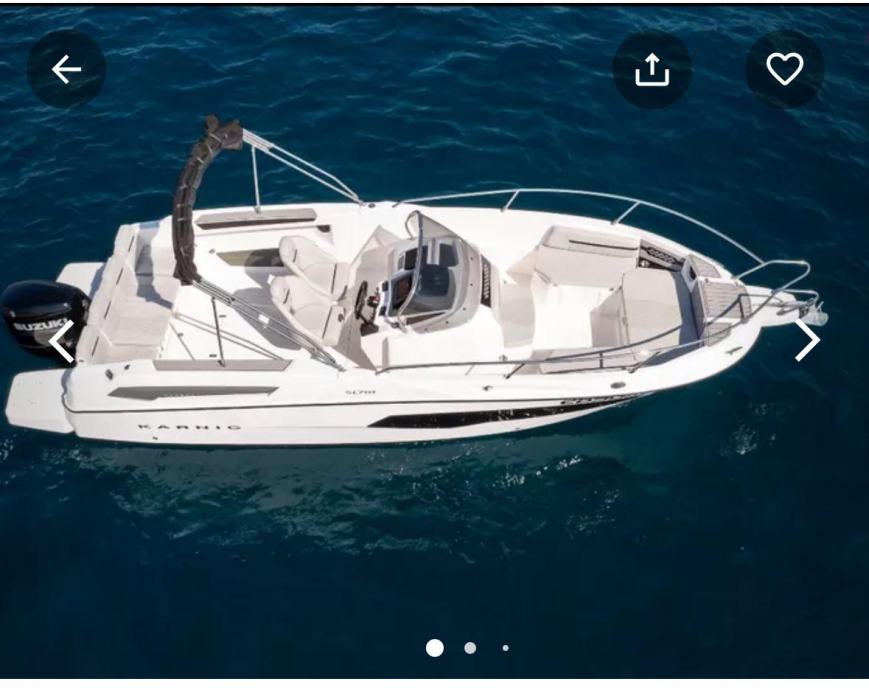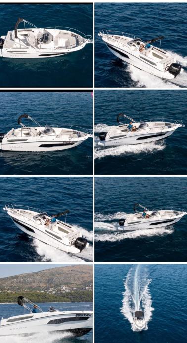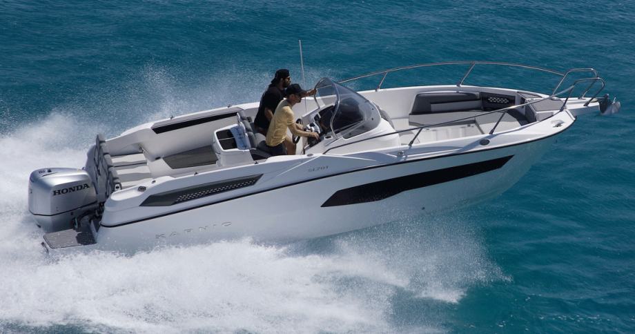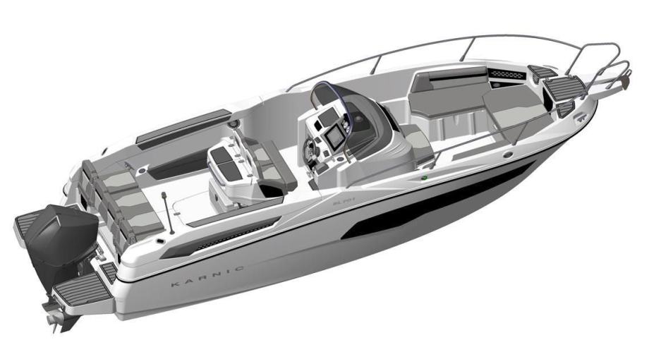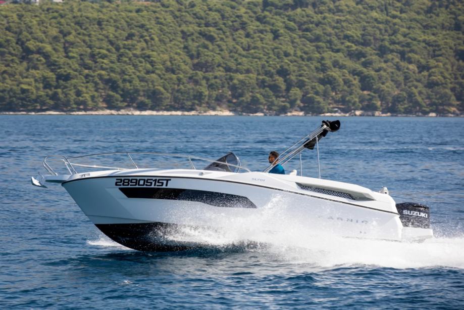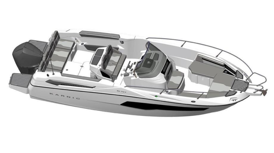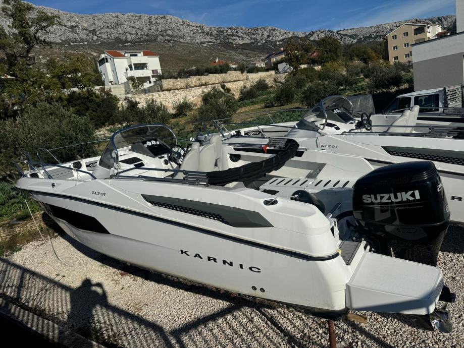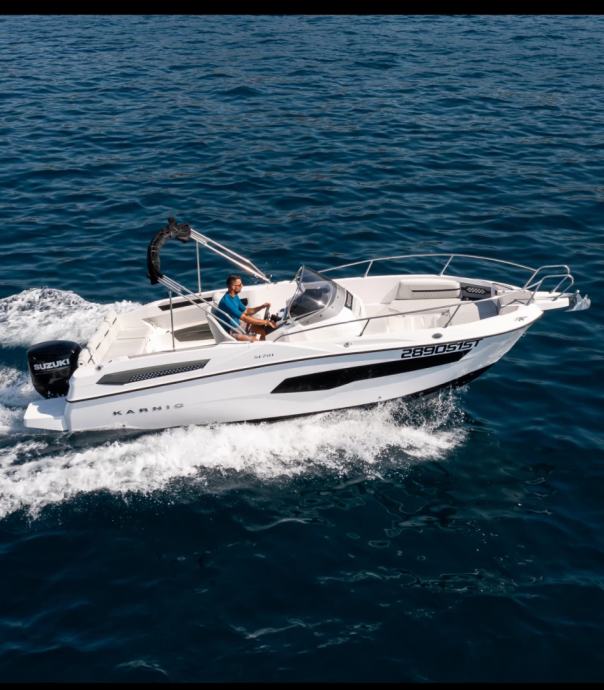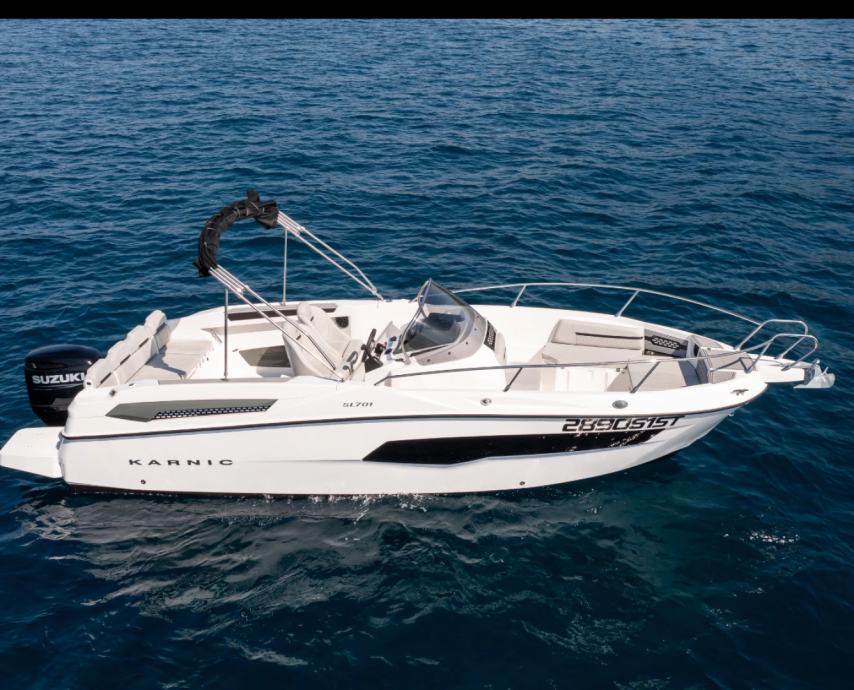 Izvrsno plovilo KARNIC 7,85 m SL701, MODEL 2025, s motorom SUZUKI 250KS, rabljeno, kompletno opremljeno (bimini-top tenda, navigacija, električno sidreno vitlo, itd.).