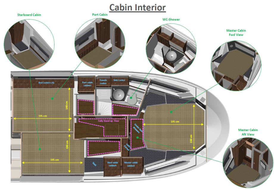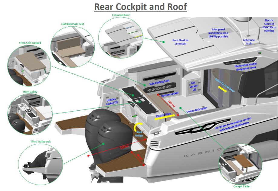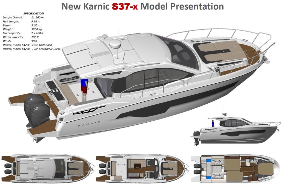 Najnovije vrhunsko plovilo KARNIC S37x ima ukupno 8 ležajeva i TRI KABINE. Najnoviji dizajn, 10 godina jamstva (10 Year limited waranty) - izvrsno korito/trup plovila.