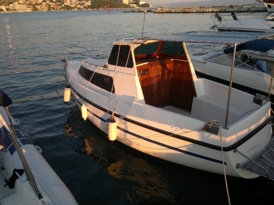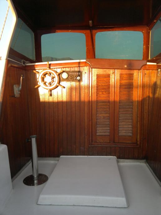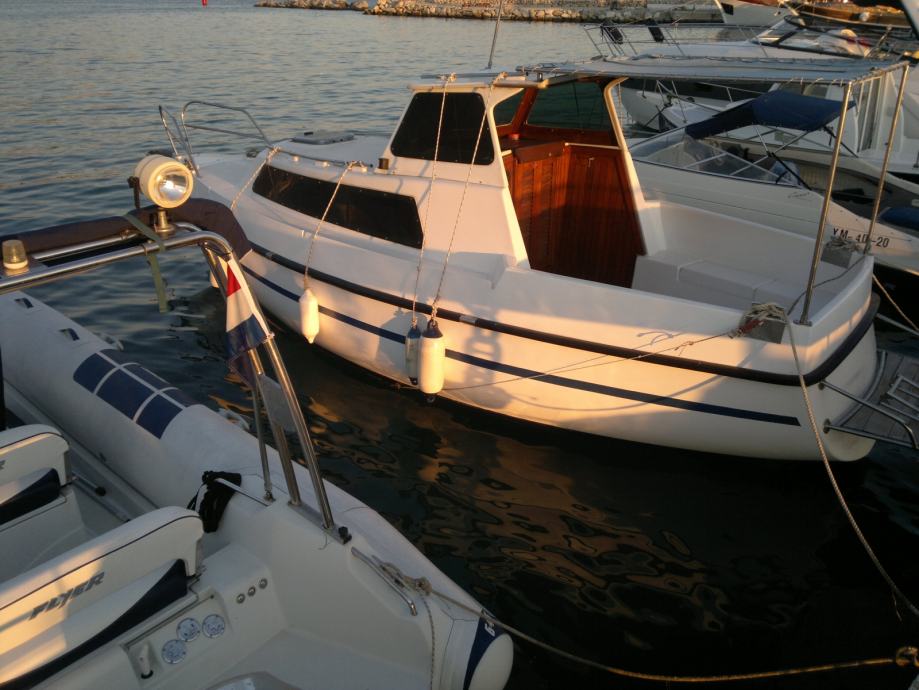 Kabina s 3-4 ležaja, WC, sudoper, 2 plinska kuhala, 220v struja, frižider (plinski i 12v), krmeni tuš, fishfinder, navigacija, rezervar za vodu i naftu...