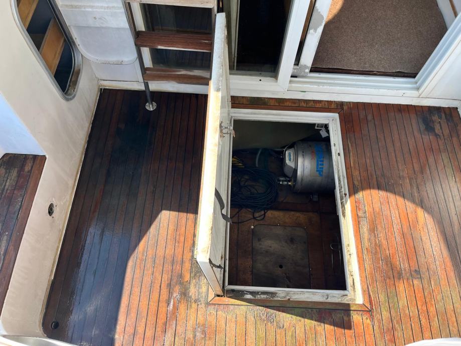 Salon, 2 kabine, kuhinja, WC, prostor na krmi i produžena platforma za kupanje