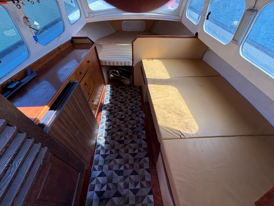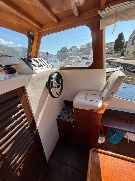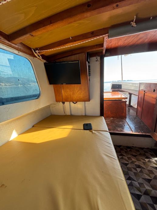 Prodajem navedenu brodicu, gradnja 1979, rekonstrukcija 2004, motor Yanmar 55 ks, novi sidreni vinč sa 40m lanca i mjeračem dubine, tank za vodu 150 l, tank goriva 160 l, crni tank za sudoper 37 l, kemij. wc, nova muzika, novi proveni jastuci za sunčanje, 2 solara, 2 nova servisna akumulatora 130Ah, zimska i ljetna tenda za zatvaranje krme, frižider 102 l, tuš, navigacija, registrirana za privredne svrhe, prevoz putnika 9+1, do 26.05.2027