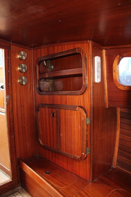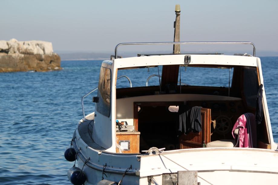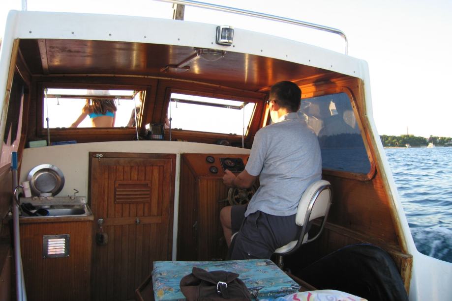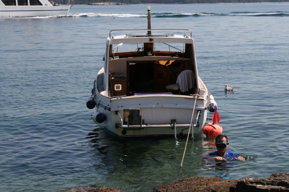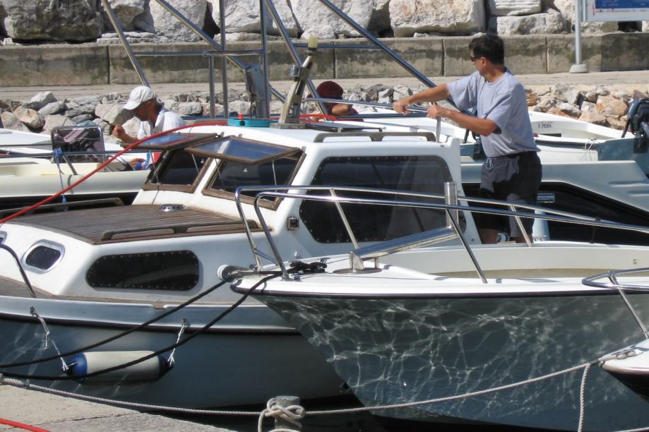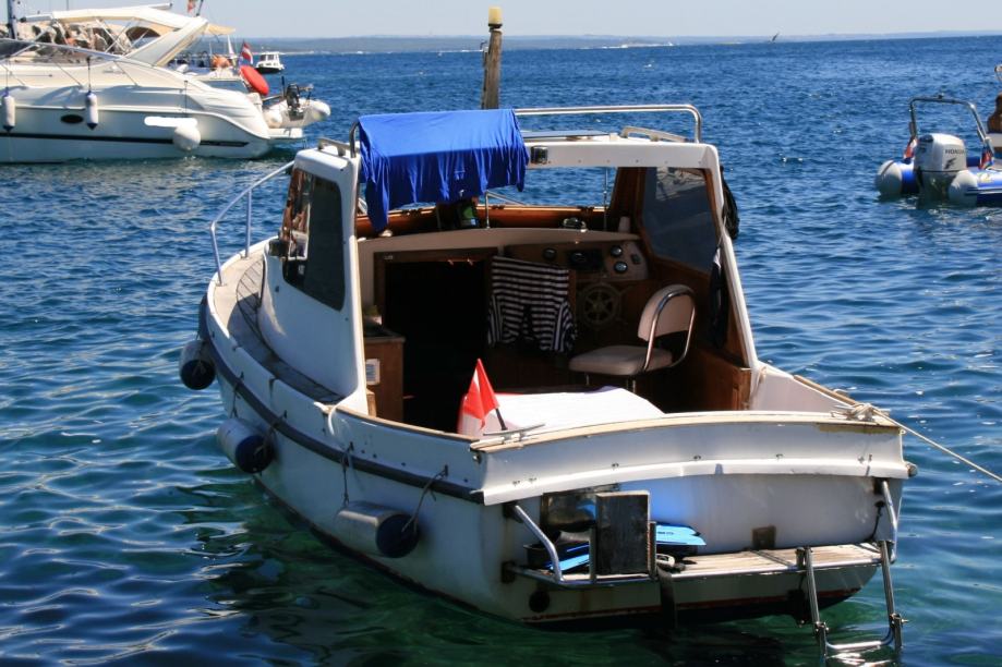 Plastična pilotina Maestral 600 (Greben Vela Luka), unutarnji motor Volvo-Penta 2002 R (dva cilindra, 18 KS). Motor ima slijedeću dodatnu opremu: dvokružni rashladni sistem (s antifrizom), dodatni filter goriva/separator vode, dodatni filter na ulazu rashladne morske vode. Godina izgradnje 1992, motor ima 1350 radnih sati, redovito je servisiran, pri čemu su korišteni isključivo originalni Volvo-Penta dijelovi i materijal. Pomoćni izvanbrodski dvotaktni motor Yamaha 5 KS, star jednu godinu, 10 radnih sati. Duljina pilotine 600 cm, zadnja platforma s nosačem pomoćnog motora i ljestvama, duljina preko svega 650 cm. Inox ograda na prednjoj palubi. Paluba i kokpit obloženi tikovinom, unutrašnjost kabine u mahagoniju. U kabini ormari, u pramčanom dijelu ležaj iz pjene s platnenim presvlakama. Plinska kuhinja, električni hladnjak, 2 akumulatora (45 Ah startni, 120 Ah solarni), solarne ćelije. Rezervoar za gorivo 50 litara, rezervoar za vodu 100 litara, oba inox po mjeri u bokovima. Eho sonar, kaljužna pumpa. Sidro bruce 7,5 kg s 8 metara lanca od 8 mm. Veći broj dodatnih sidara, manjih i većih. Inox nosač plinskog ferala, plinski feral 1500 cd. Moguća prodaja bez pomoćnog motora, u tom slučaju cijena je 1.000 EUR niža.