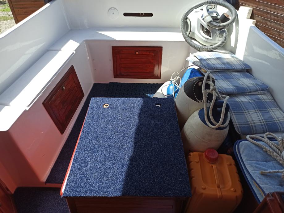 Prodajem maestral 600, 1988.g. s unutarnjim motorom volvo penta 9,6kw s 2400 sati, pomoćni motor thomos 4,8, produžena krmena platforma (75cm) s škalam, hard top, solar s dvije batrije, sonder, lavandin, tuš, frižider, orginal ledenica s kompresorom, plinsko kuhalo s bocom, tapecirana kabina, novi prozori na kabini, tenda stara 3 godine u top stanju, ležajevi, radio, prije 2g. čitava unutrašnjosti obojana i podvodni dio itd...sve u top stanju.