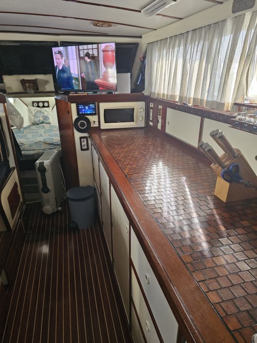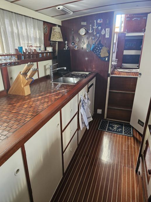 Barka ima dva motora Iveco Aifo 8960 SM 21 letnik 2002 . ima 3 hladilnika , 2 TV , 2 radija ,2 spalnici , 2 WC , crni tank, prenosni agregat , Garmin , autopilot, električno vitlo, gumenjak Yamaha Yam 230, motor Yamaha 2,5 , Plinski kuhalnik , Microvalovka , Indukciska ploča, Grijanje , Klimu , 12-24-220 v,3 sunčane celice Autopilot, Automatski punjač baterija , 2 startne baterije 160 A , 2 servisne baterije 200 A , primarni 24v sistem ,vremenska centrala , zimska cerada , poletna senčila , umjetni Tik na svim vanjskim prostorima , Bow Thruster.
