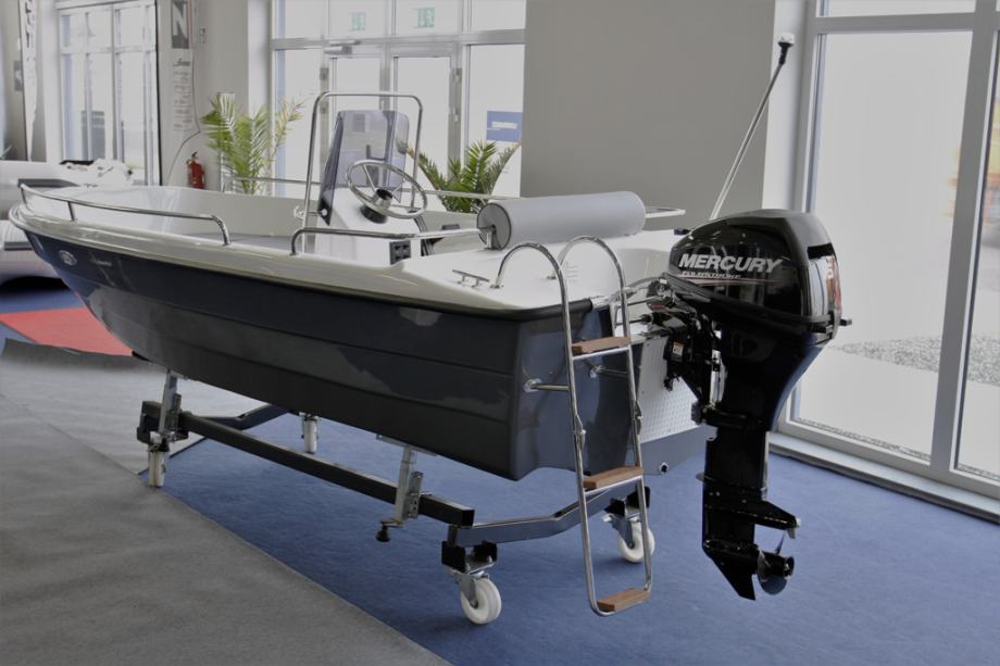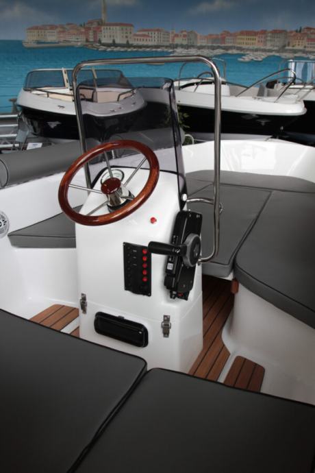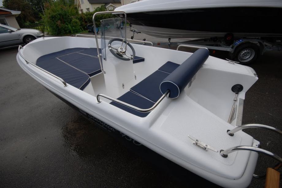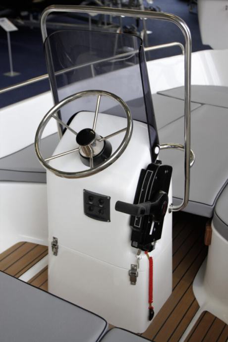 Otvoreno plovilo sa središnjom konzolom. U pramčanom dijelu nalaze se sjedala sa sklopivom sunčanom platformom.
