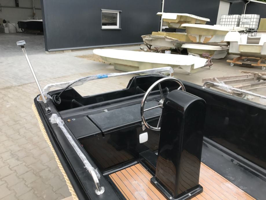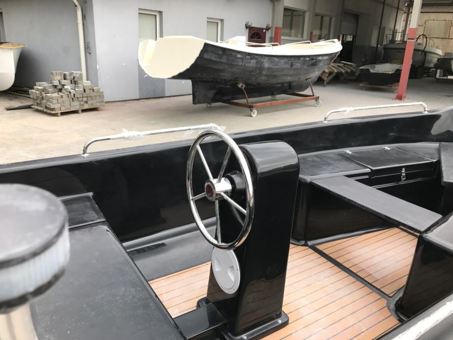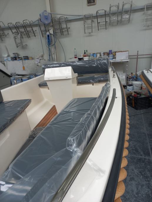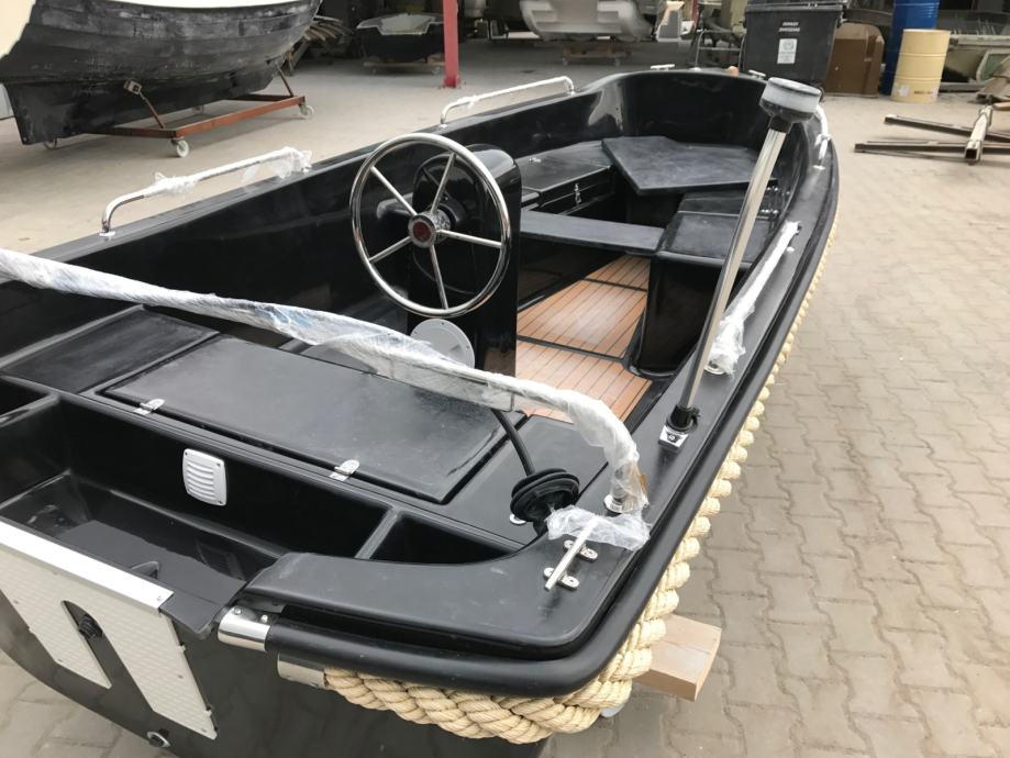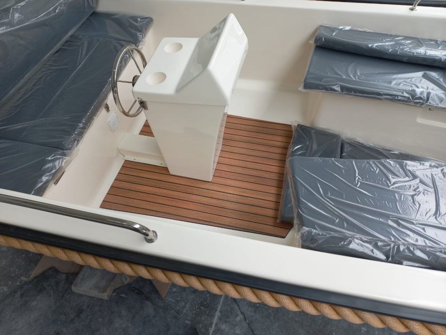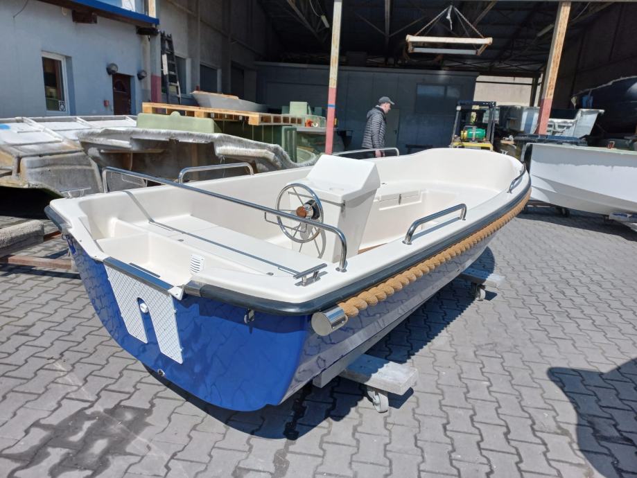 Mali čamac s otvorenom palubom s malom konzolom u sredini čamca. Brod preporučamo za obiteljski odmor, turizam i ribolov.