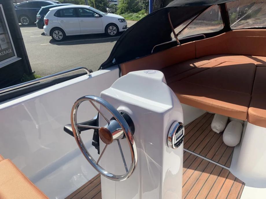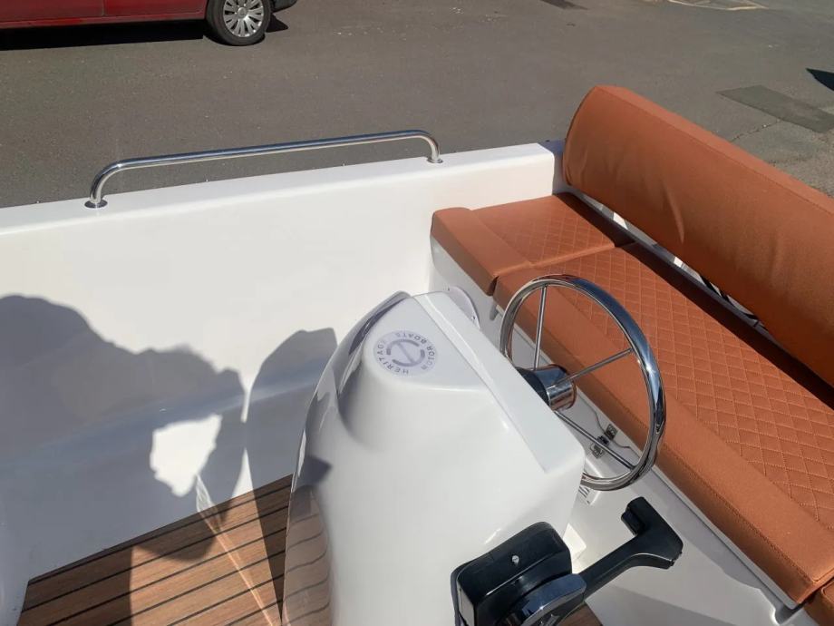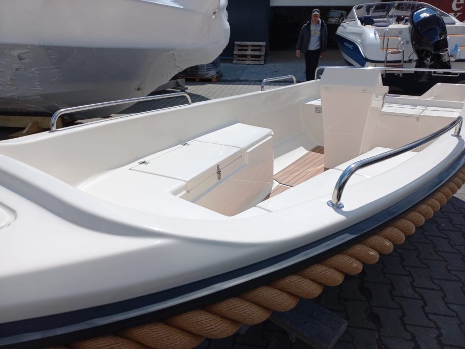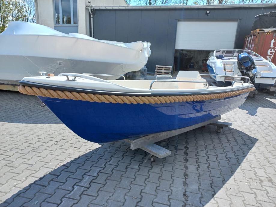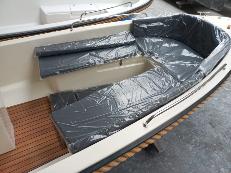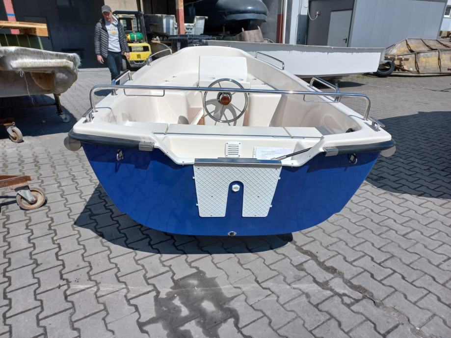 Mali čamac s otvorenom palubom s malom konzolom u sredini čamca. Brod preporučamo za obiteljski odmor, turizam i ribolov.
