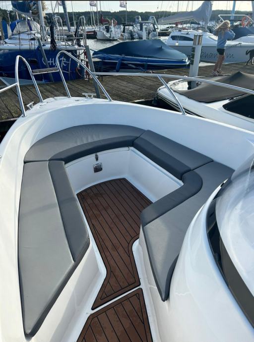 Veliki brod s otvorenom palubom i udobnim pristupom krmi i pramcu. Dubok i prostran kokpit, komandna konzola s vratima i sjedalom za dvije osobe. Brod preporučamo za odmor s obitelji, turizam i ribolov.