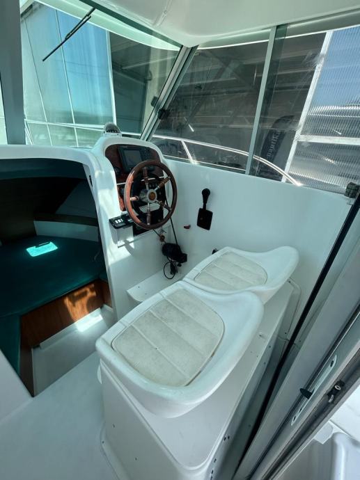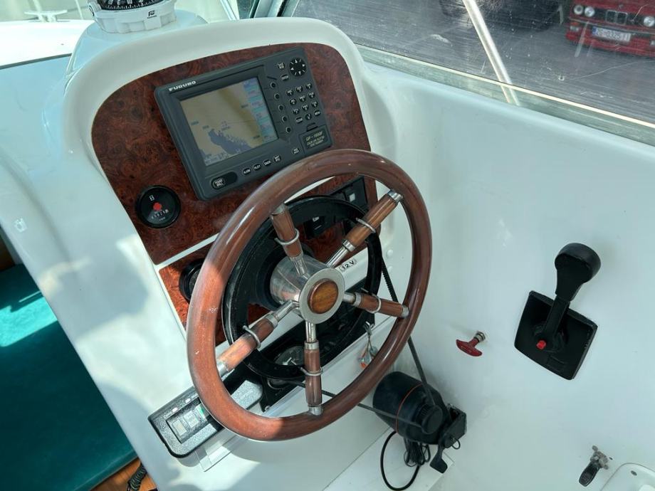 Najkvalitetnija i najpouzdanija motorizacija Yanmar , vrlo bogato opremljen sa autopilot , gps-fishfinder, radio stanica , krmena platforma , obalni priključak na 220 v , sudoper , plinsko kuhalo , otvor na krovu kormilarnice sa ventilacijom , palubni otvor , dupla komanda i duplo kromilo , pumpa za pranje kokpita sa morskom vodom . Upravo obavljen redovan servis motora , kompletno poliranje , pranje , antifouling i cinkovi , spreman za korištenje. Plovilo se nalazi u našem prodajnom salonu u Zaprešiću , isporuka na destinaciju kupca je moguća prema dogovoru.
