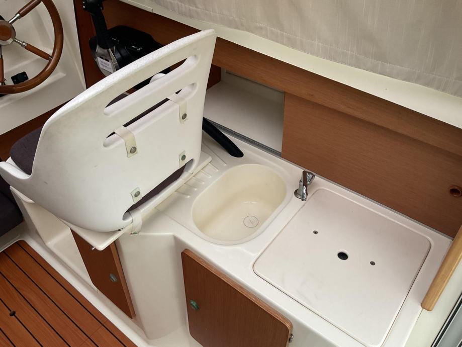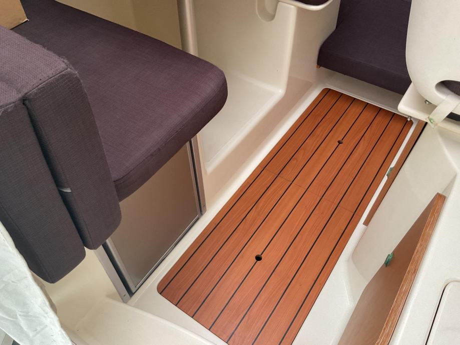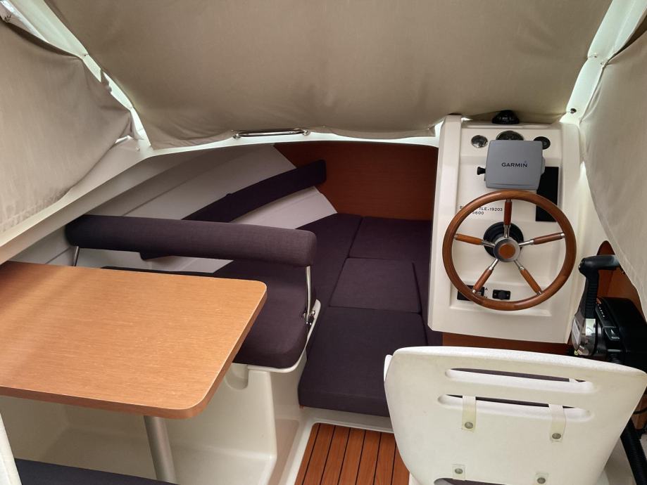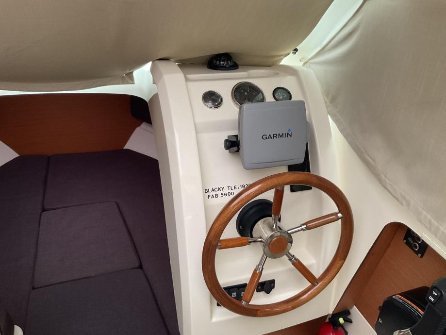 Špirun, pramčani ležaj za sunčanje, krmena klupa/krevet, stol, hladnjak sa ledenicom, Garmin navigacija/GPS, spremnik slatke vode 70L, krmeni tuš, bimini...
