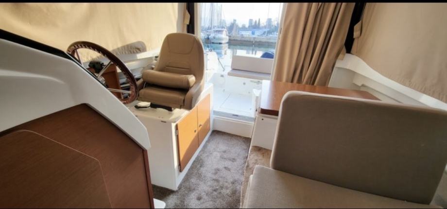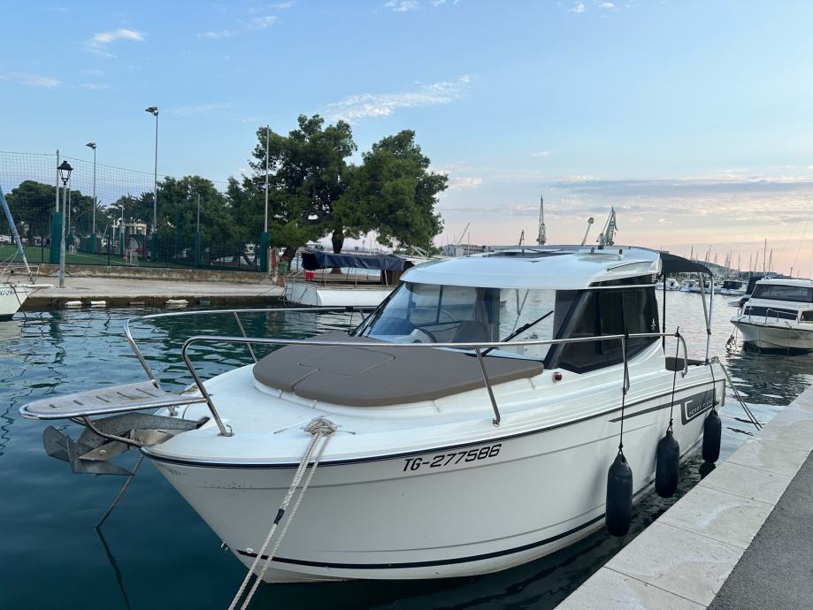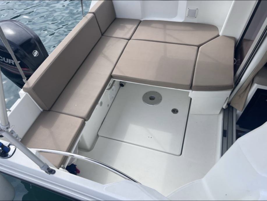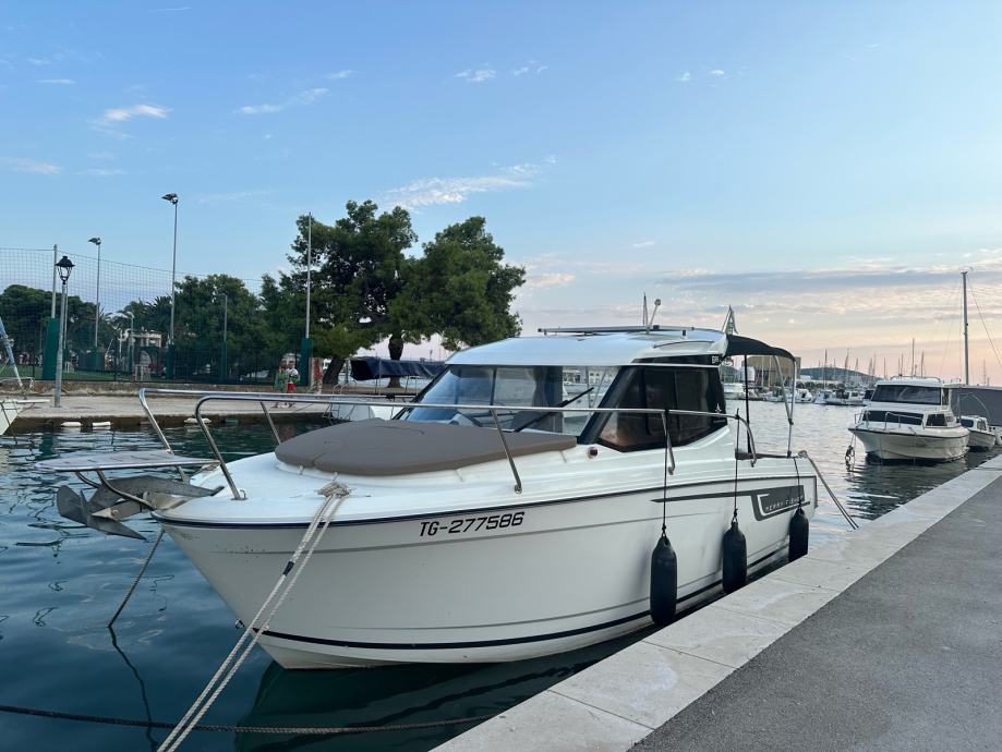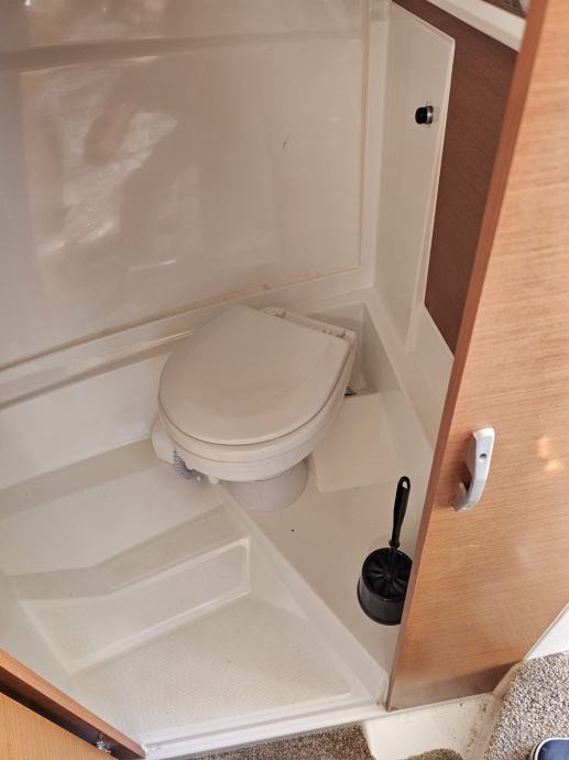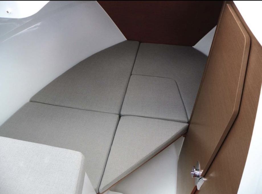 S opremom: bow thruster, elektricni vinc, spirun, kompletni jastuci unutarnji i vanjski plus suncaliste, električni wc prostorija sa crnim tankom, gps ploter fishfinder Garmin 9 incha ekran s kartom Jadrana, tus, rezervoar slatke vode 100 litara, dva sudopera, hladnjak, kompletne zavjese za kokpit,sklopivi bimini za krmu, tepih u interijeru, dva akumulatora, Mercmonitor level 3 digitalni display, solar s victron regulatrom (bluetooth), boss audio zvucnici (bluetooth)...