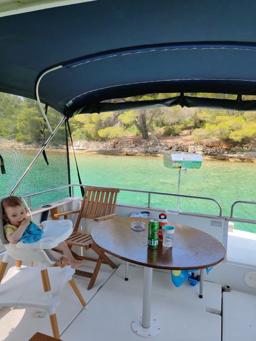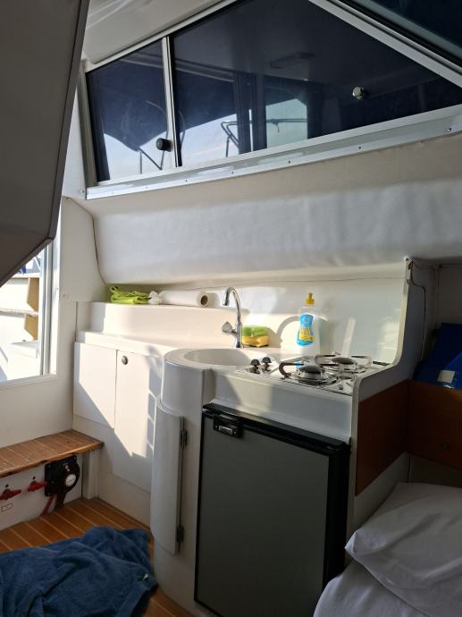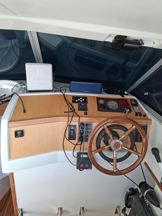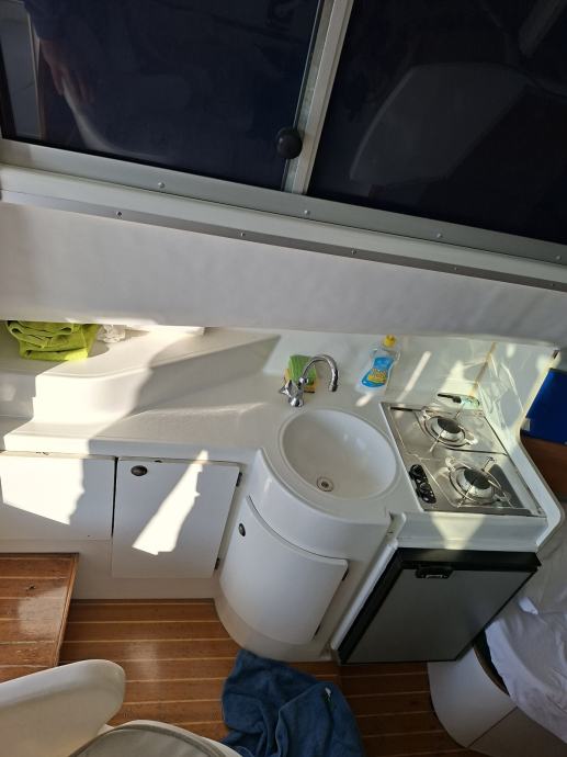 Prostrana krmena platforma + skale + nosač za pomoćnu pentu + nautuc BBQ roštilj, proveni špirun sa tikovinom, bimini tenda + ljetna sjena tenda (crna) (2025.), prekrivalo za stakla sjena (crna) (2025.) + tamna (Plava), podvodna krmena ambijentalna svjetla, morski WC sa zatvorenom kabinom + nova Jabsco pumpa za wc (2022.), kuhinja sa sudoperom i dva plinska kuhala, hladnjak sa zamrzivačem (2020.), webasto grijanje - eberspacher sa digitalnim upravljanjem (2022.) novi nadmadrac za proveni ležaj (2025.), Lenco flapsovi sa pokazivaćima pozicije i automatskim podizanjem (2022.), auto pilot Autohelm ST3000, VHF radio, fishfinder Furuno, reflektor dometa 300m sa električnin upravljanjem (2022.), ele. sidreni winch Lewmar 1000w (servisiran) + nova sklopka wincha + nove provene komande wincha + sidro + lanac 8mm 50m + unutarnja komanda sidra, krmeni stol + dvije klupe + stolica, tank goriva 2 × 125L (250L) sa dva plovka pokazivaća goriva, tank vode 60L sa ele. Jabsco pumpom slatke vode, sve nove obloge (tapecirung - prova, kuhinja, wc kabina), novo drvo na upravljačkoj konzoli (2022.)