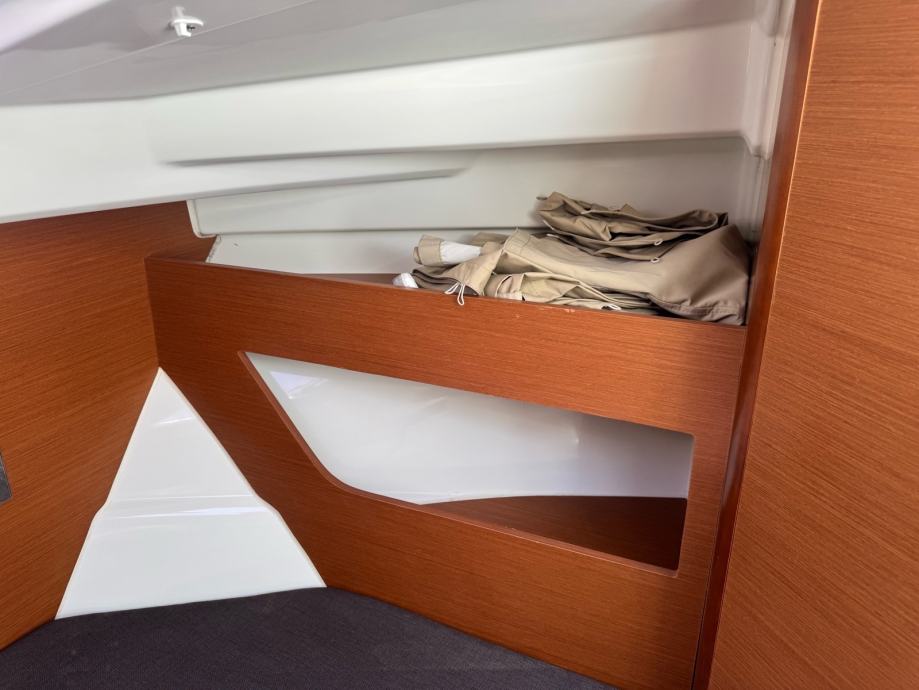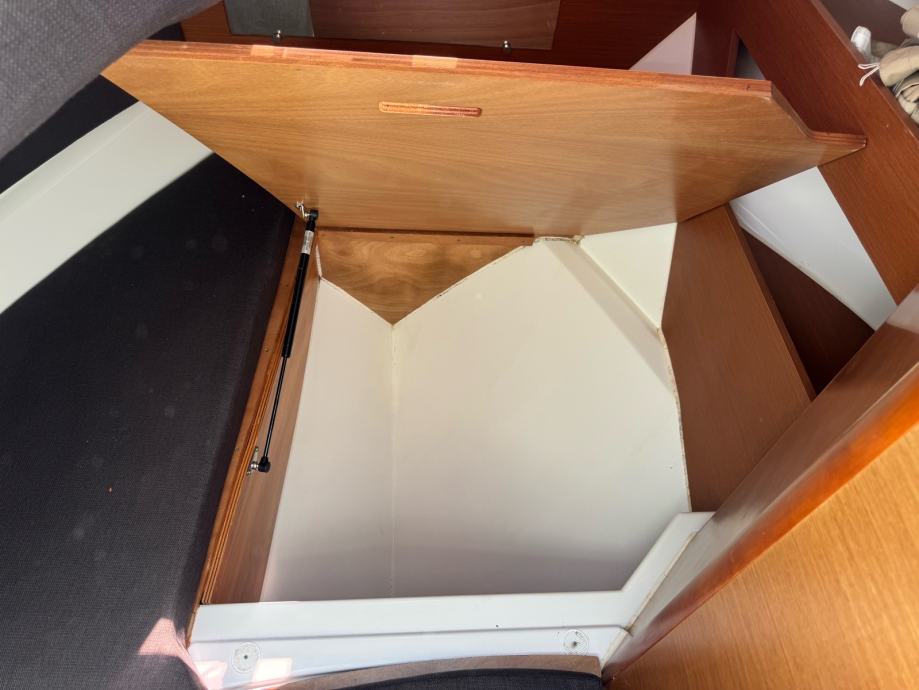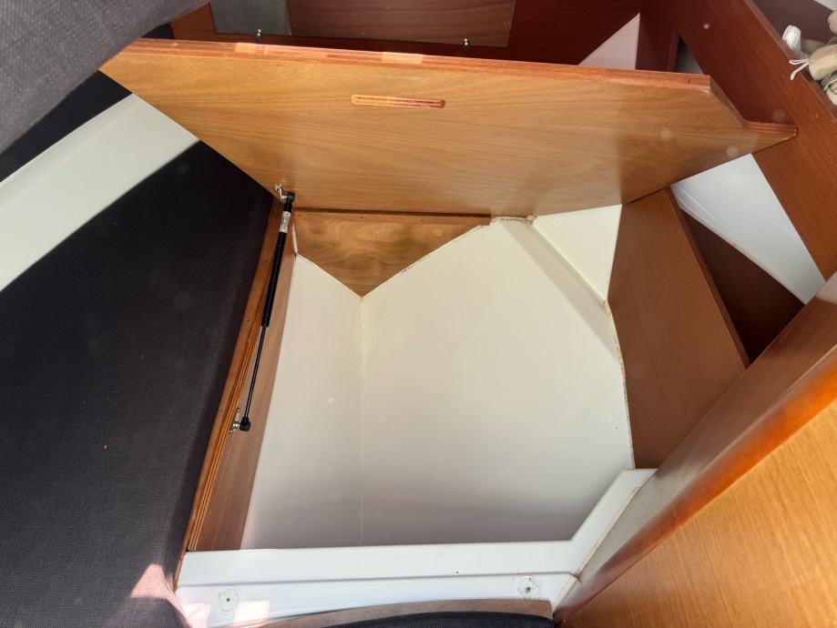 Prednja kabina s bračnim ležajem + mogućnost pretvaranja salona u bračni ležaj.