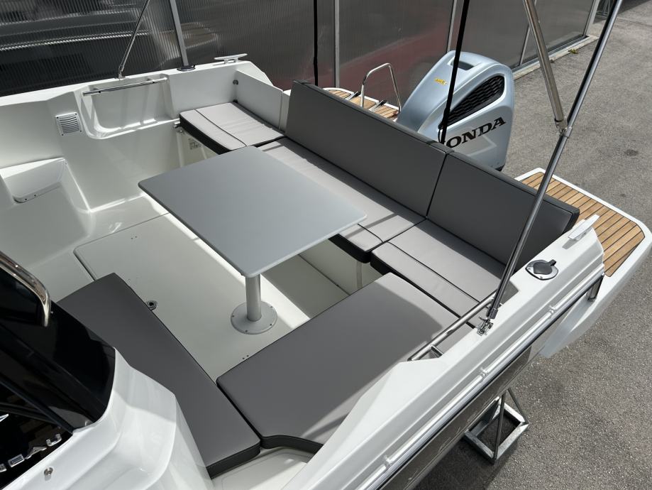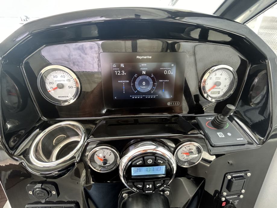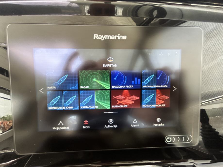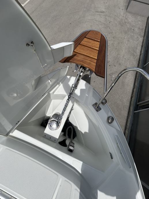 Plovilo kupljeno i prvi puta pušteno u pogon 2020 g, korišteno samo 75 sati ,paket elektronike Raymarine Axiom povezan sa motorom, Audio system BT,upravo ugrađen novi pramčani propeler vetus, električno sidreno vitlo Lewmar , hladnjak 49 L Waeco, morski wc sa fekalnim tankom, krmene platforme sa tikovinom, nova tenda za kokpit graphite sa bočnim sjenilima na rolanje,novi pramčani most.Kokpit salon sa stolom pretvoriv u sunčalište.Obalni priključak na 220 v sa punjačem baterija.