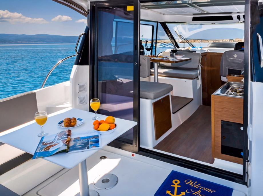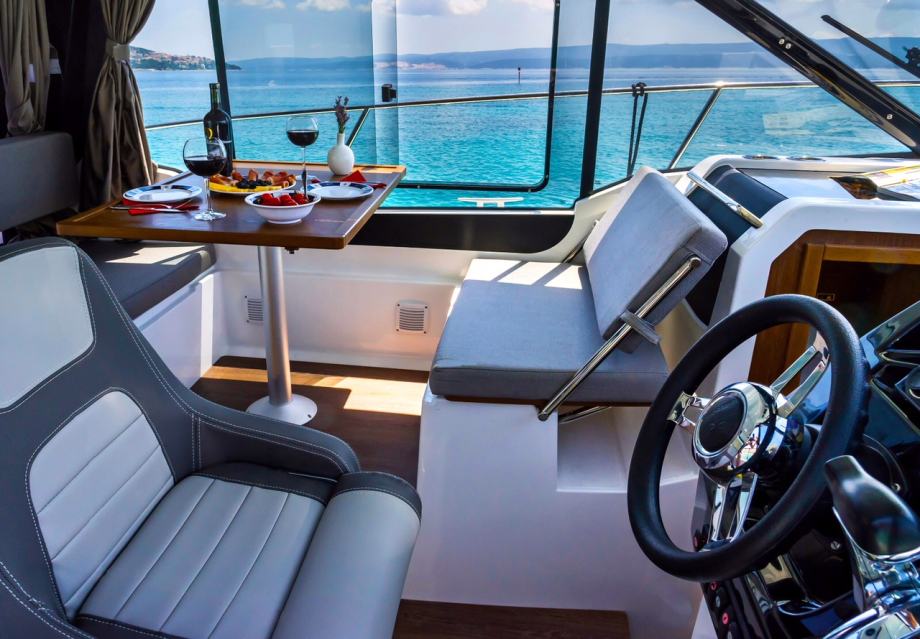 Salon u kokpitu sa mogućnosti pretvaranja u sunčalište - L oblik (Sjedišta u obliku slova L, stol, bočni naslon)