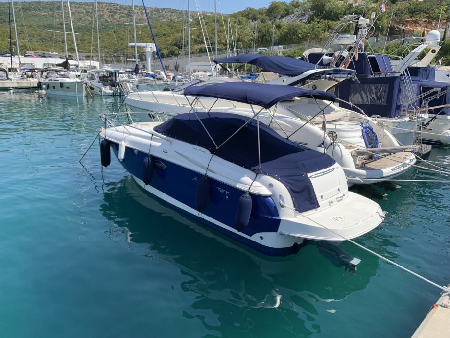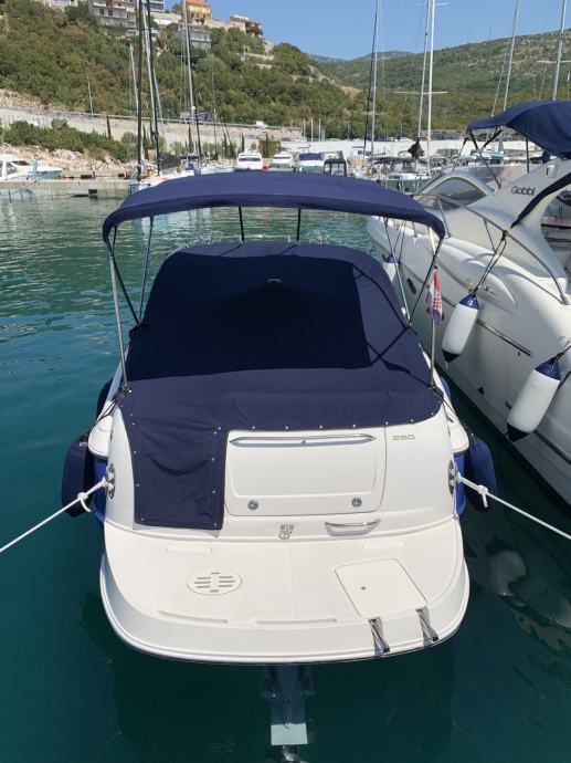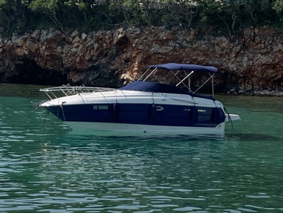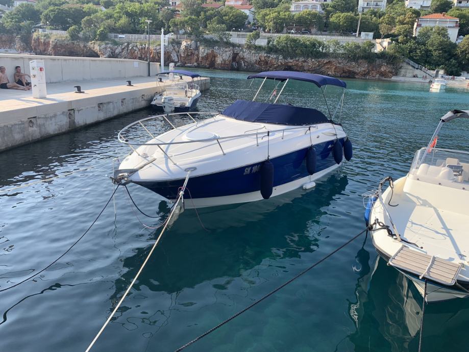 Prodajem odličan day cruiser. Brod nije nikada bio u renti, obiteljsko plovilo. Od prvog dana u RH, nije uvoz. U mom je vlasništvu od 7/2019 godine. Idealno za dnevna i više dnevna krstarenja. Redovito održavano plovilo, najviše dva mjeseca u moru, ostalo konzervirano na suhom vezu. Motor Volvo Penta 5,0 sa dual prop petom. Izuzetno ekonomičan sklop sa prosječnom potrošnjom od svega 21-24 L/h pri krstarećoj brzini od 23-24 čvora. Oprema sva što treba, sidreno vitlo, flapsovi, Raymarine ploter, solarni panel sa kontrolerom punjenja, WC sa crnim tankom i vrlo važno ima BOW THRUSTER za lakše manevriranje i pristajanje. Duljina plovila preko svega je 8,3 metra. Plovidbena dozvola važeča do 5/2028. Uz plovilo u cijeni je set ispušnih kolektora i koljena, novo. Za sva pitanja stojim na raspolaganju. Razlog prodaje - gradnja nekretnine. U zamjeni dolazi u obzir bager od 4T maximalno, ili manji fisherman vrijednosti do 18000 € i doplata. Imam i prikolicu Bertinovec za njega, NDM 3500 kg. Može razgovor vezano za istu. Kontakt mob. 098-470-230.