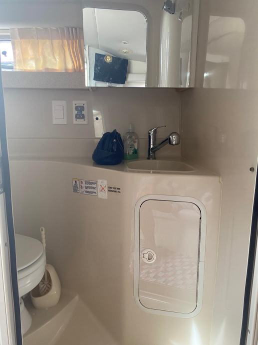 bow-thruster, dva kompleta relativno novih tendi, električni sidreni winch sa daljinskim upravljanjem, bojler, plin za kuhanje, dva tuša, WC sa el. ispiranjem, TV, generator 220V, tank otpadnih voda sa pumpom za pražnjenje u moru ali i otvorom za pražnjenje na vezu, novi gel-coat napravljen ove godine (dokumentacija i računi), novi madraci u obje kabine, WHF, sat. navigacija i sonar, kompas. Brod je potpuno ispravan, funkcionalan, registriran i osiguran, sa važećim tehničkim pregledom do 06.2027. Nikada upotrebljavan u komercijalne svrhe. Isključivo obiteljska ljetovanja... Još detalja na upit....