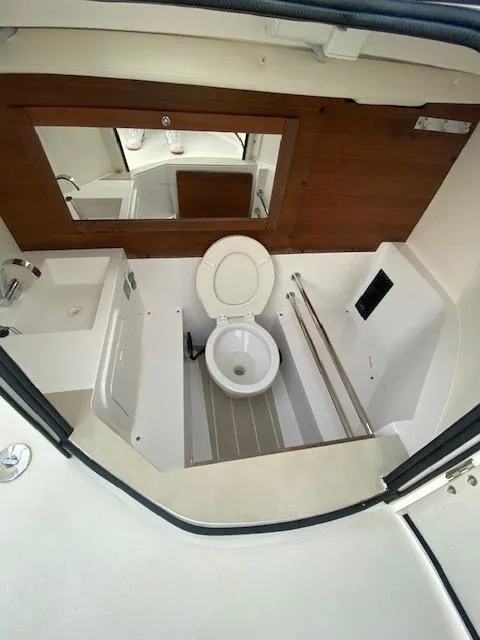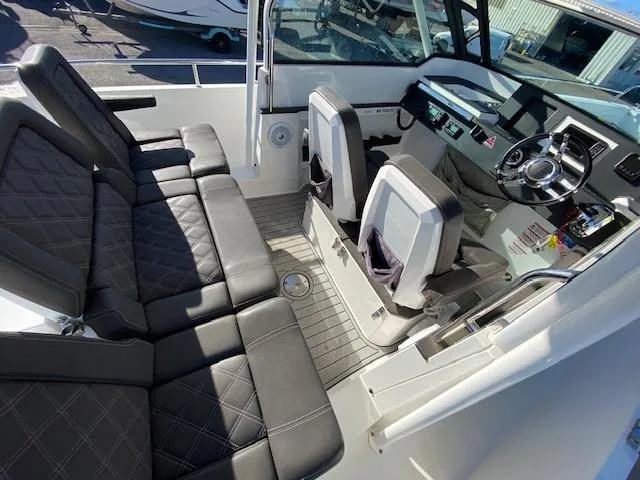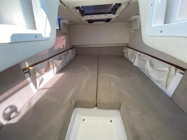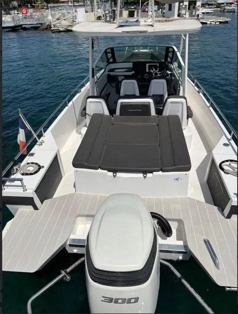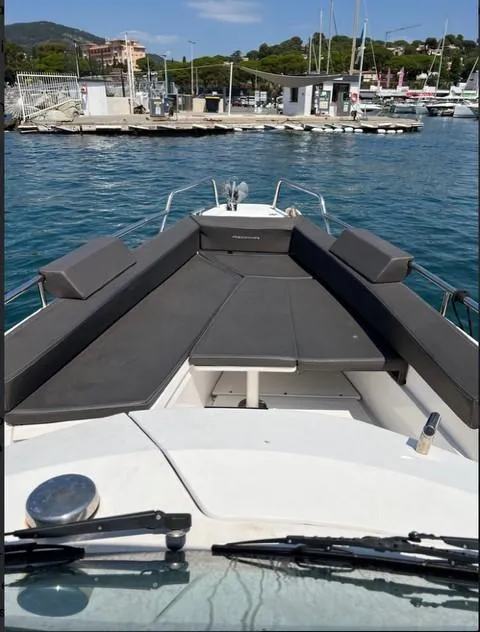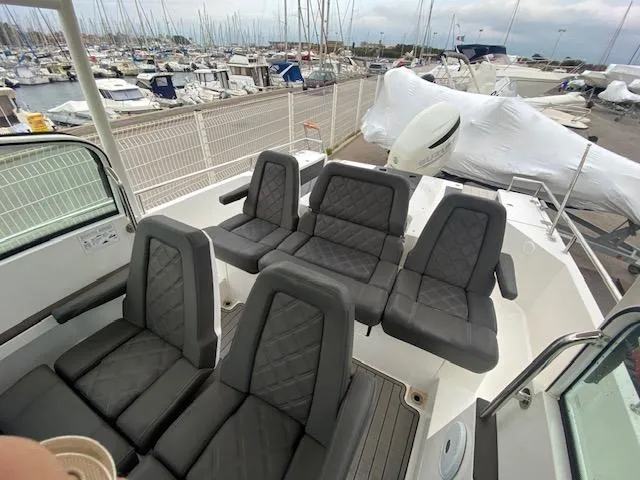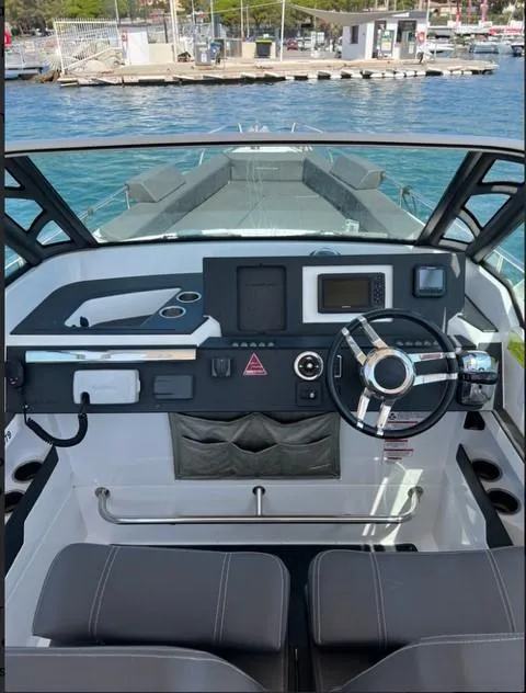 Krmilni prostor je premišljeno zasnovan, s dva udobna sjedišta i jednostavnim pristupom do hladnjaka. Odprta paluba nudi prilagodljivost za druženje, sončenje ili vodene sportove. Prednji sjedišni prostor je prostor koji uključuje mizo, što stvara potpuni prostor za večeru na otvorenom.
