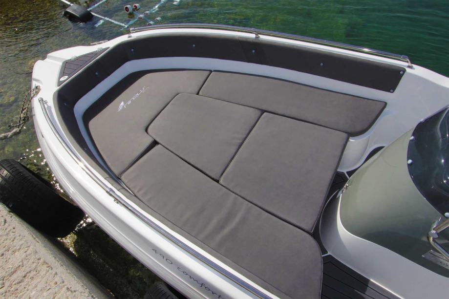 Centralna konzola; inox rukohvat iznad kozole; 4 prekidača; 12V priključak; navigacijska svjetla; automatska kaljužna pumpa; jastuci za sjedenje i ležanje; stol; upravljač sa sajlama, sidrena vodilica, inox ogradica