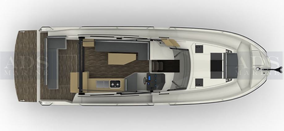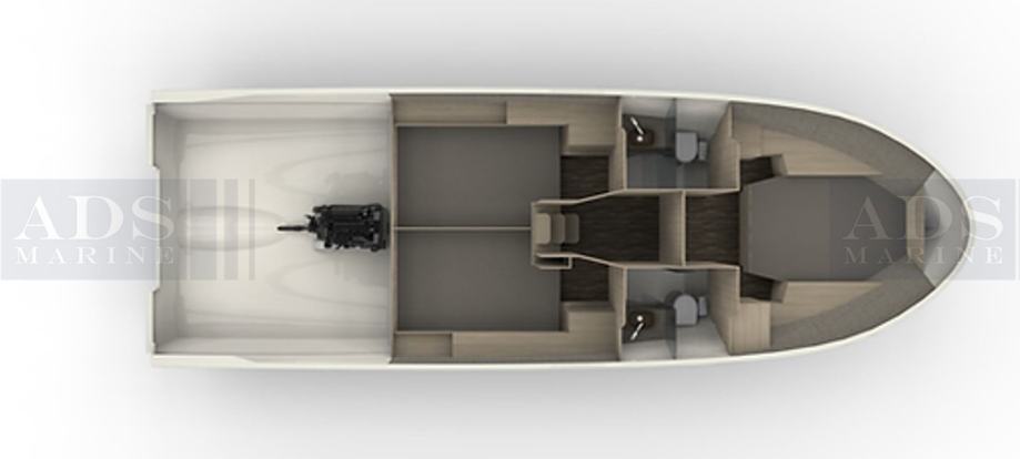 -Fly-bridge uključuje: set madraca za sjedala i naslon, podesivu upravljačku stolicu, kormilo, zaklopka gasa