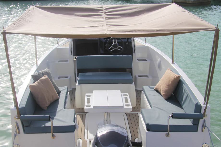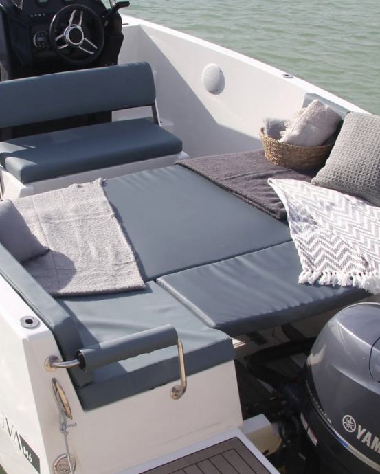 Kabina NUVA M6 nudi fleksibilan stražnji dio za svaku priliku. Zahvaljujući svom konvertibilnom dizajnu, lako se može transformirati u stol za zajedničke obroke ili prostranu palubu za sunčanje za opuštanje na suncu, maksimizirajući udobnost i funkcionalnost na brodu.