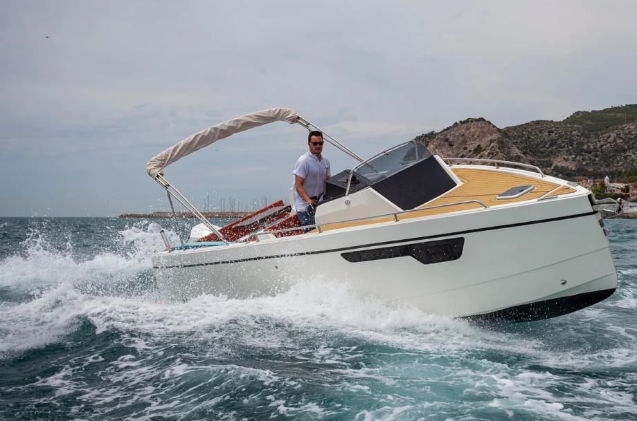 NUVA M8 ističe se svojim sportskim i tečnim linijama koje maksimalno iskorištavaju prostor bez gubitka elegantne biti. Njegov stilizirani pramac odiše pokretom i dinamikom, pozivajući vas da otkrijete nove avanture od prvog trenutka. Opremljen motorom snage do 225 KS, nudi snažne i učinkovite performanse koje osiguravaju glatkoću i stabilnost na svakom putovanju. Osjetite uzbuđenje krstarenja vodom sa slobodom i kontrolom, uvijek ploveći prema novim horizontima.