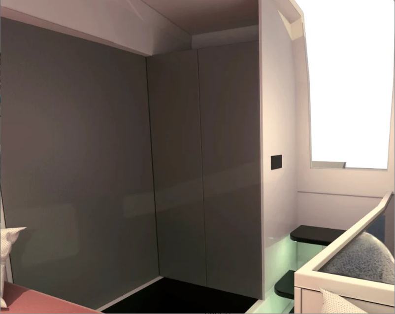 Opremljena umivaonikom, WC-om i tušem, svaki detalj je pažljivo odabran kako bi se osigurala praktičnost bez žrtvovanja udobnosti i privatnosti. Raspored maksimalno iskorištava raspoloživi prostor i osigurava ugodno i prostrano iskustvo čak i na moru.