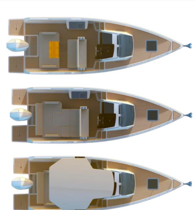 PRILAGODLJIVI PROSTOR ZA BLAGOVANJE Redefiniramo iskustvo jedrenja. Modularni kokpit i dvostruke palube za sunčanje transformiraju se prema vašim potrebama, omogućujući sve, od društvenih okupljanja do pauza za potpuno opuštanje. Prostori koji se prilagođavaju vašem tempu i načinu života.