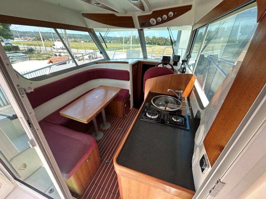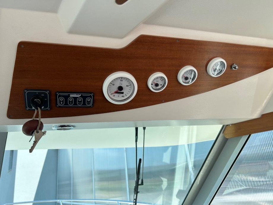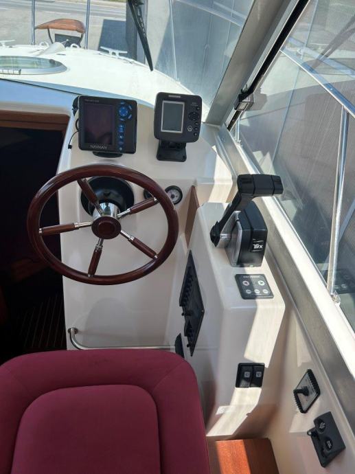 Vrlo rijetka prilika ! plovilo sa samo 193 radna sata od prvog vlasnika, doslovno u stanju novog.Plovilo vrhunske kvalitete i završne obrade , klasa iznad Jeanneau I Beneteau, visina u kabini 1.94 m , dimenzije kokpita 2,44 m x 1,66 m , trostruko izolirana strojarnica što ga čini najtišim u klasi . Plovilo je iznimno uredno i vrhunski održavano , moćan , pouzdan i ekonomičan Nanni diesel ,opremljen do zadnjeg detalja ! Pramčani propeler , Električno sidreno vitlo , Lenco Falpsovi ,Gps , Fishfinder, radio stanica , radio sa zvučnicima , obalni priključak na 220 V , punjač baterija , bojler tople vode + topla voda preko motora, Isotherm hladnjak , Plinsko kuhalo sa plinskom instalacijom i spremnikom u kokpitu , zatvorena wc prostorija i tuš kabina sa električnim wc i fekalnim tankom + macerator pumpa, novi pramčani most ,nova bimini tenda, unutrašnje zavjese 360 , hidrauličan sistem upravljanja sa opcijom kormila u kokpitu ,nova krmena platforma sa teskopskim ljestvama, tuš u kokpitu, sklopiva klupa u kokpitu + stol. Na plovilu je upravo obavljeno kompletno održavanje, profesionalno poliranje , antifouling i cinkovi, redovan servis motora , svi filteri , remeni , tekučnine , separator goriva , ugrađeno novo ispušno koljeno.Plovilo je kompletno pregledano i u 100 % je ispravnom stanju , spreman za korištenje bez dodatnih ulaganja . Prodaje se sa 6 mjeseci garancije na motor , isporuka na destinaciju kupca je moguća prema dogovoru , prilikom primopredaje radi se probna vožnja s kupcem i kontrola svih uređaja i plovilo se predaje kupcu u ispravnom i plovnom stanju.