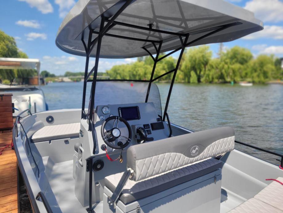 Trup ovog broda rezultat je gotovo 30-godišnjeg iskustva tvornice Pegasus u brodogradnji. Odlikuje se oštrim dnom u obliku slova V, koje prekrasno reže valove i prelazi u blaži kut na krmi za stabilnost na vodi. Trup je dug 4,98 m, ali širok čak 2,32 m, što brod čini izuzetno stabilnim. Zbog ove iznimne stabilnosti dobili smo PRS certifikat za posadu do sedam članova. Osim toga, dizajn broda, poznat iz modela Pegasus 450, gdje su trup i paluba slijepljeni sa strane, pruža puno iskoristivog prostora unutra. Prva verzija ovog modela broda dizajnirana je s centralnom upravljačkom konzolom. Po želji se na konzolu može dodati fiksni tvrdi krov na okviru od nehrđajućeg čelika, koji pruža hlad kormilaru i omogućuje ugradnju dodatne opreme. Nudimo širok raspon opcija opreme, uključujući dodatne ormariće, sunčane terase i dodatne naslone.