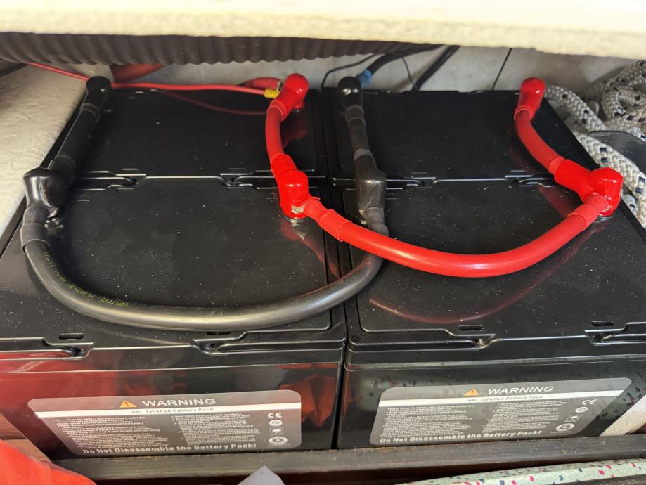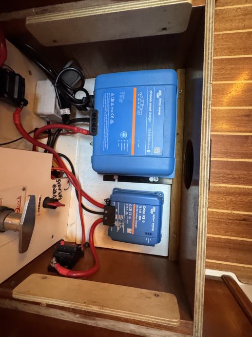 Servisne 220ah AGM prebačene za startne po jedna za svaki motor (na jednu je spojen thruster a na drugu vinč)