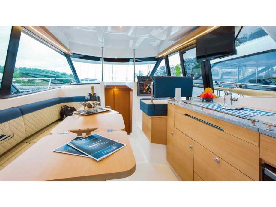 Najveća prednost Platinuma 35 je mogućnost gotovo neograničene konfiguracije, kako vanjske tako i unutarnje. Salonska paluba bila je podijeljena na noćni i dnevni dio. U noćnom dijelu možete pronaći od dvije do četiri kabine koje se mogu zaključati i čak dvije kupaonice. Prostrani dnevni boravak sastoji se od velikog stola s polukružnim garniturama za sjedenje, zatvorene kuhinje i kormilarnice. Panoramski prozori propuštaju puno svjetla i pružaju izvrsnu vidljivost. Na vanjskom stražnjem dijelu nalaze se sjedala i prostrana platforma za kupanje.