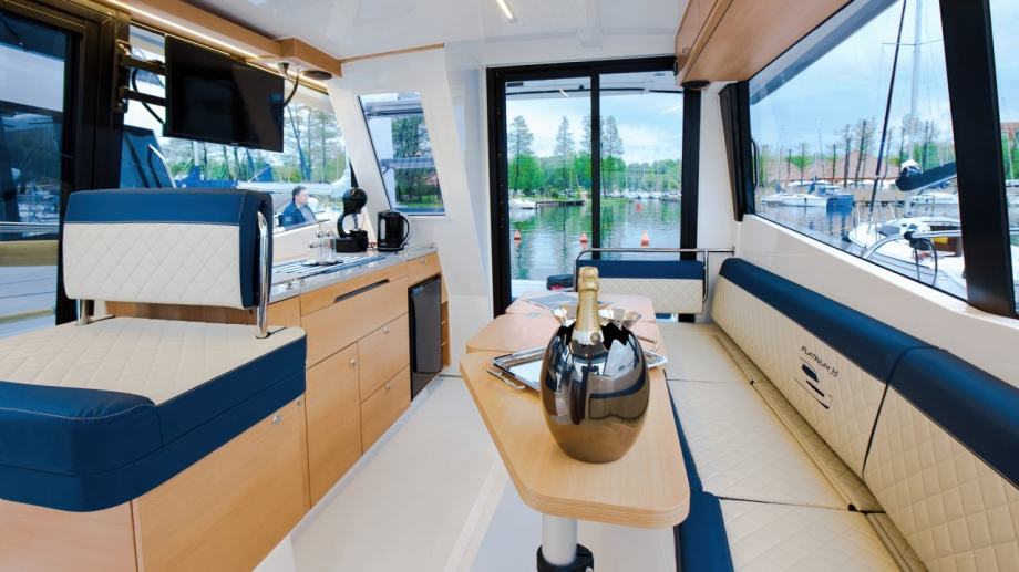 Najveća prednost Platinuma 35 je mogućnost gotovo neograničene konfiguracije, kako vanjske tako i unutarnje. Salonska paluba bila je podijeljena na noćni i dnevni dio. U noćnom dijelu možete pronaći od dvije do četiri kabine koje se mogu zaključati i čak dvije kupaonice. Prostrani dnevni boravak sastoji se od velikog stola s polukružnim garniturama za sjedenje, zatvorene kuhinje i kormilarnice. Panoramski prozori propuštaju puno svjetla i pružaju izvrsnu vidljivost. Na vanjskom stražnjem dijelu nalaze se sjedala i prostrana platforma za kupanje.