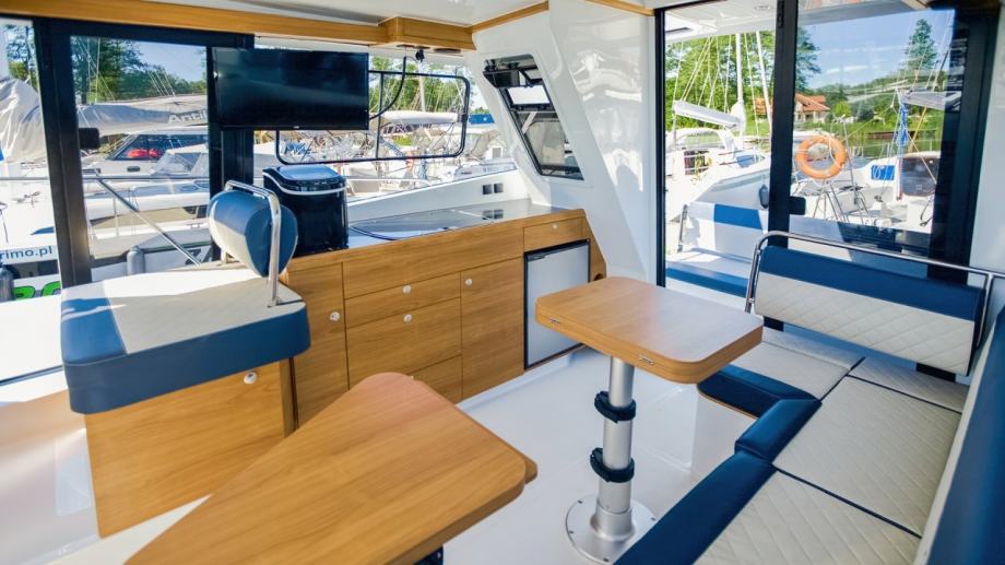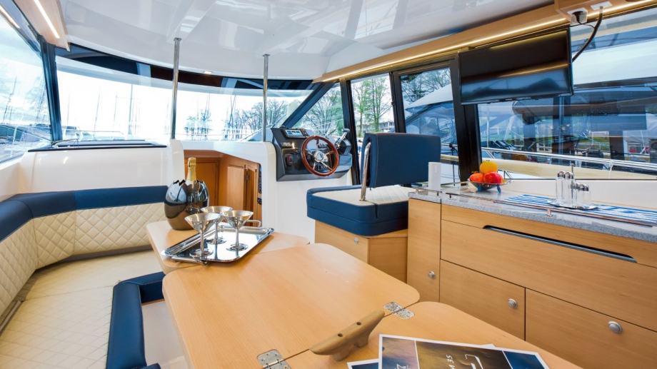 Kao jedna od rijetkih motornih jahti ove klase, nudi mogućnost ugradnje gornjeg sunčališta (flybridge). Dajući vam mogućnost upravljanja jahtom odozgo, flybridge pruža dodatni i udoban prostor za putnike i omogućuje vam uživanje u jedrenju na otvorenom.