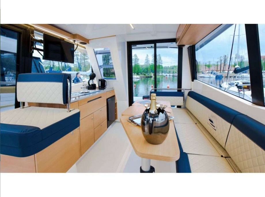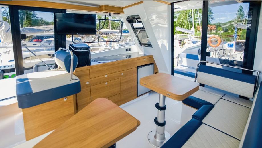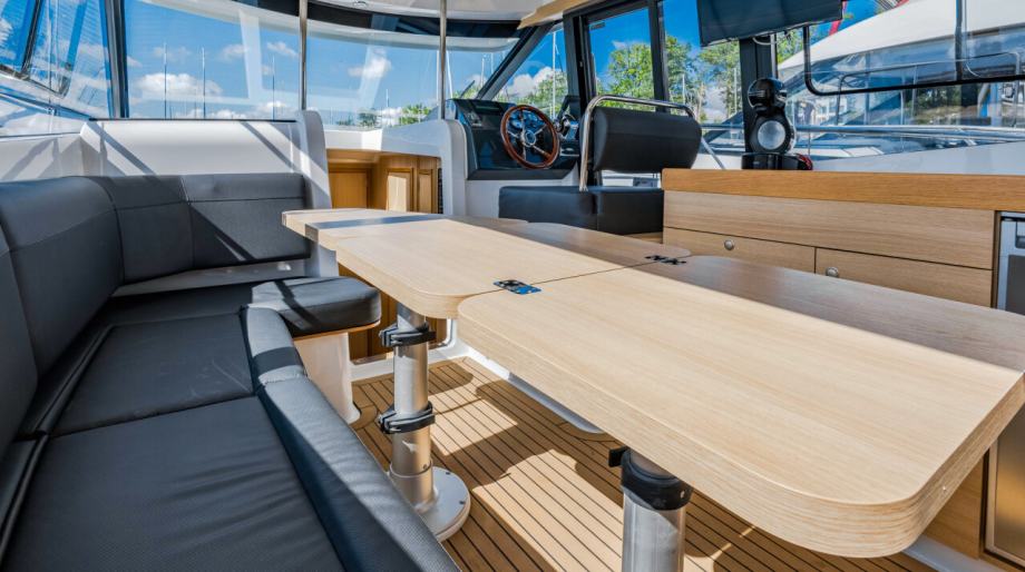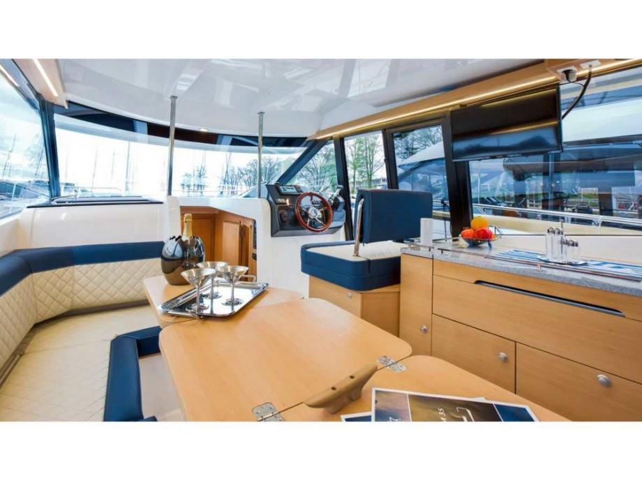 Kao jedna od rijetkih motornih jahti u ovoj klasi, nudi mogućnost ugradnje gornje sunčane palube (flybridge). Pružajući vam mogućnost upravljanja jahtom odozgo, flybridge pruža dodatni i udoban prostor za putnike i omogućuje vam uživanje u jedrenju na otvorenom.