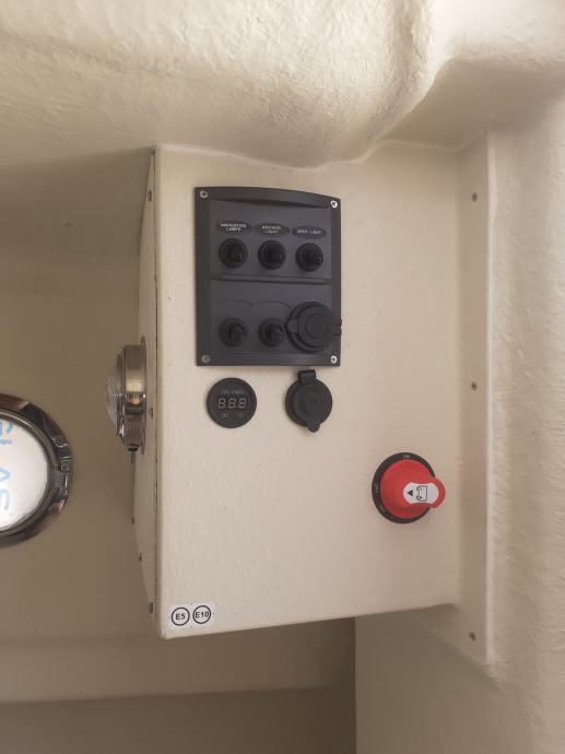 -Komplet el.instalacija - glavna sklopka, USB utičnice, utičnica 12V, navigacijska svijetla, sidreno svjetlo, krmeno svijetlo, baterijia Yuasa 90Ah sa kutijom za bateriju, digitalni voltmetar za prikaz stanja baterije