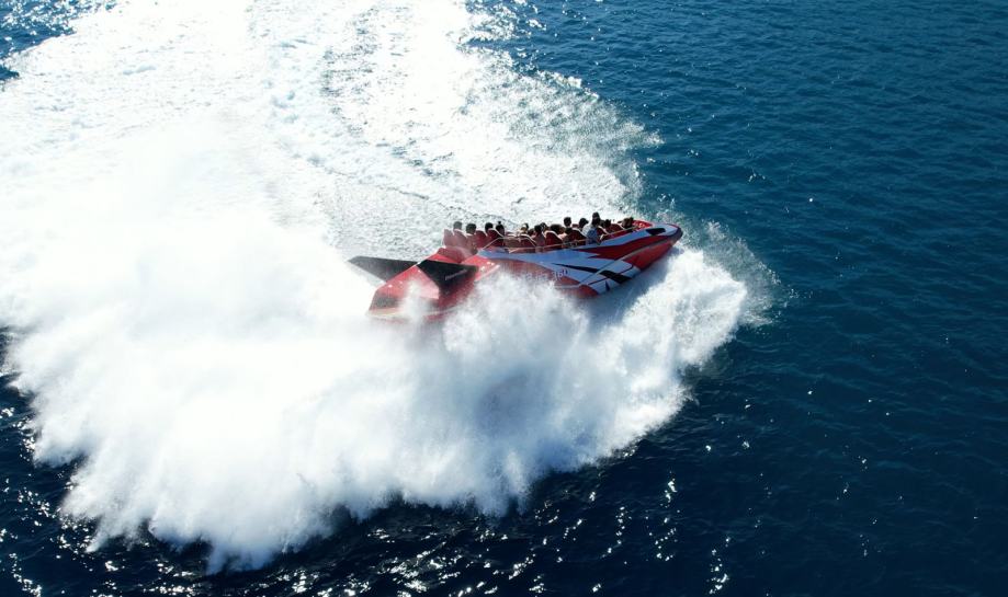 Otvoreni prostor koji se nalazi na stražnjoj strani našeg broda posebno je dizajniran za izbacivanje vode lakim manevrom. Kromirani ispušni otvori na obje strane na stražnjem dijelu plovila dodali su jedinstveni štih cjelokupnoj slici. Možete izabrati opciju s jednim ili dva motora. Trebali biste odabrati benzinski ili dizelski motor od najmanje 450 KS za korištenje na ovom brodu. Budući da je naš Predator Jet Boat izrađen od kompozitnih materijala, težina broda je puno lakša, a izdržljivost materijala znači da je mnogo otporniji na koroziju od brodova izrađenih od aluminija. Kobilica broda izrađena je od kompozitnog sustava struna ojačanih vlaknima, bez ikakvog drva, a nanesena je na brodsku poliuretansku pjenu i utisnuta u kobilicu. Čak i ako Predator Jet Boat zaroni u vodu, ima sve značajke nepotopivog broda.